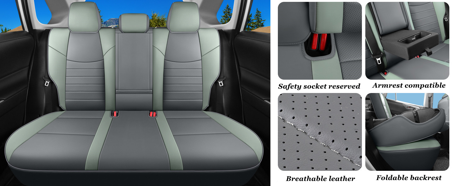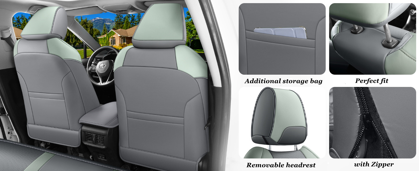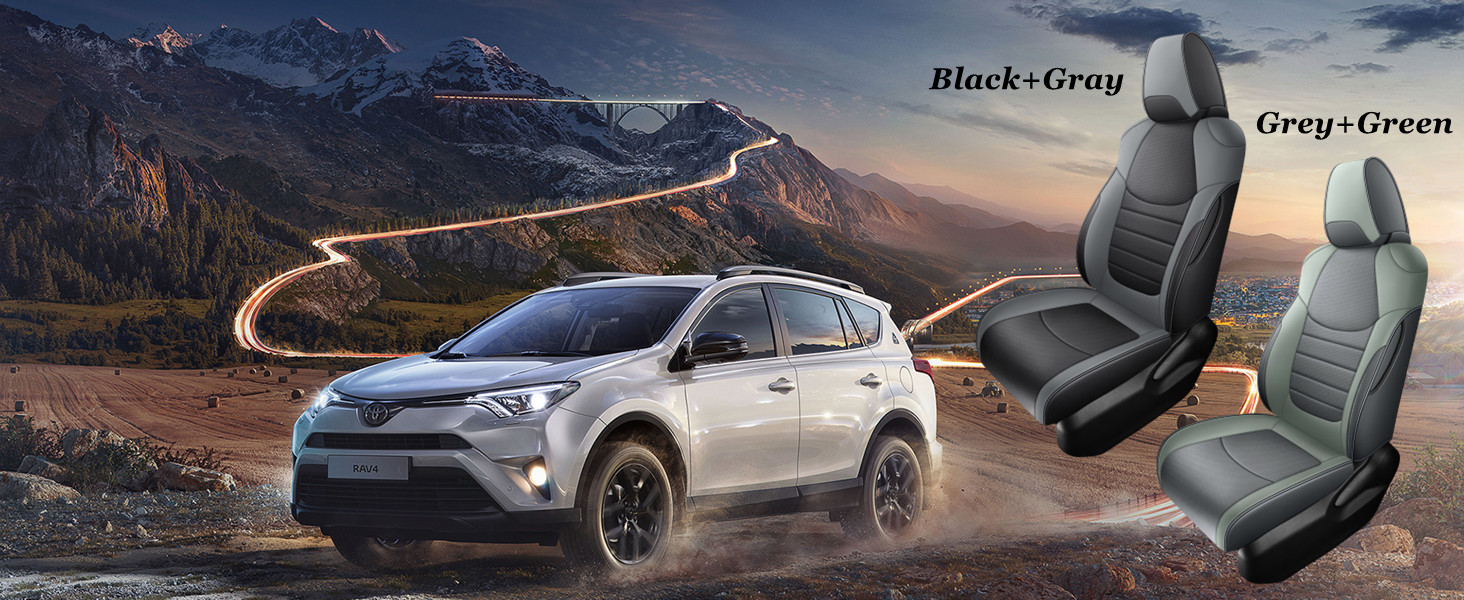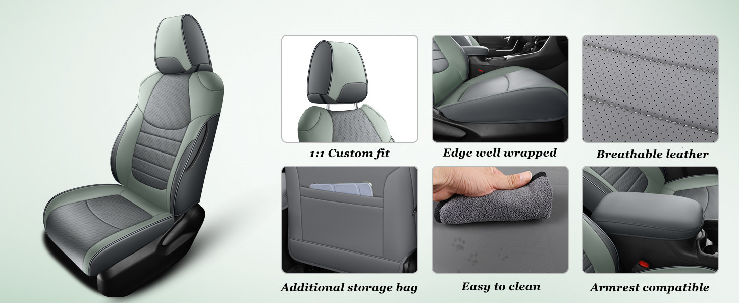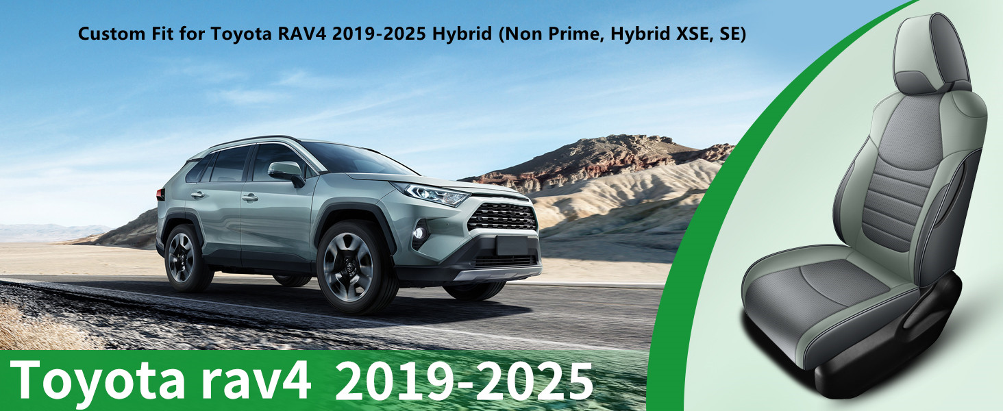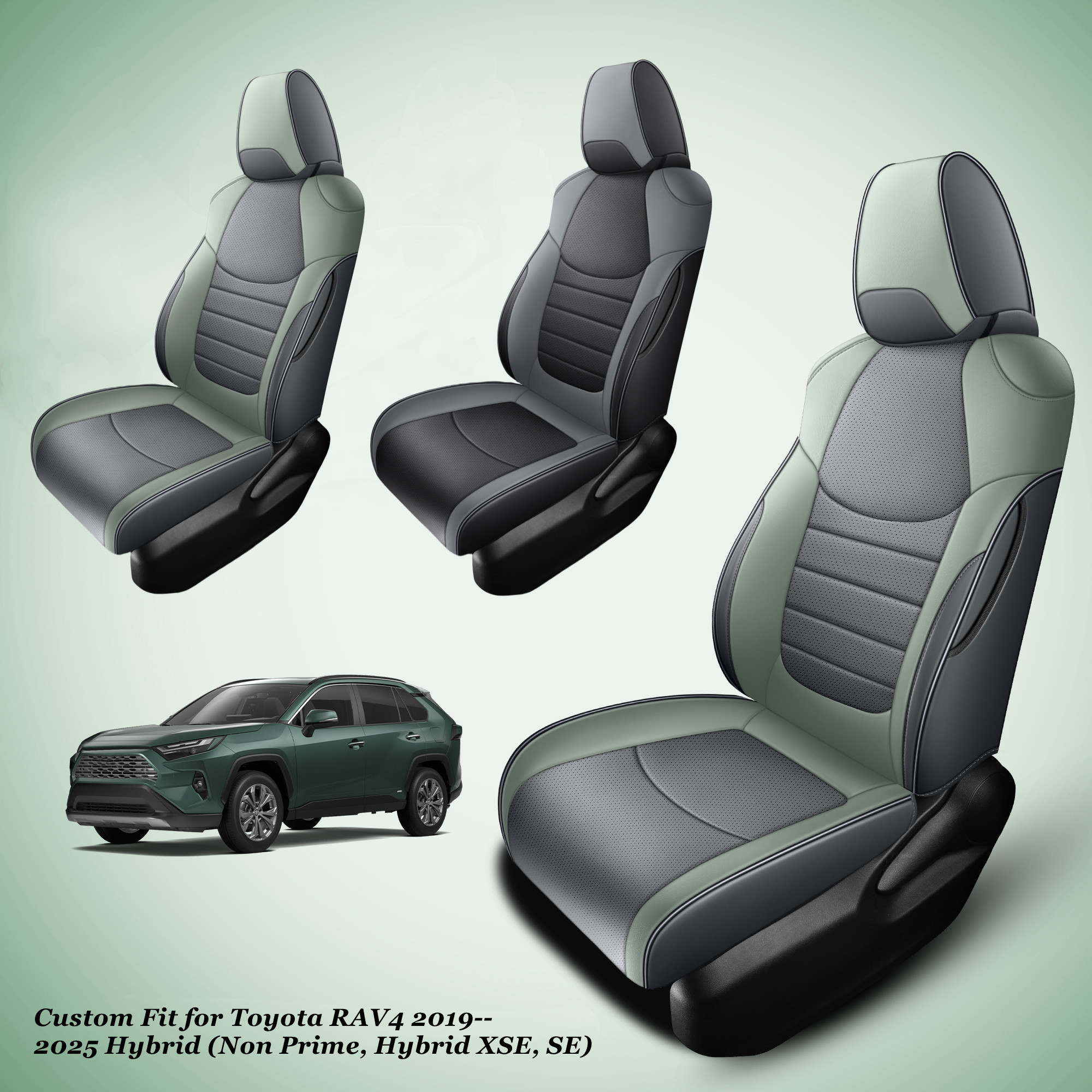 Custom Fit for 2019-2025 Toyota RAV4 Hybrid Gray and Green Leather Rav4 Seat Cover