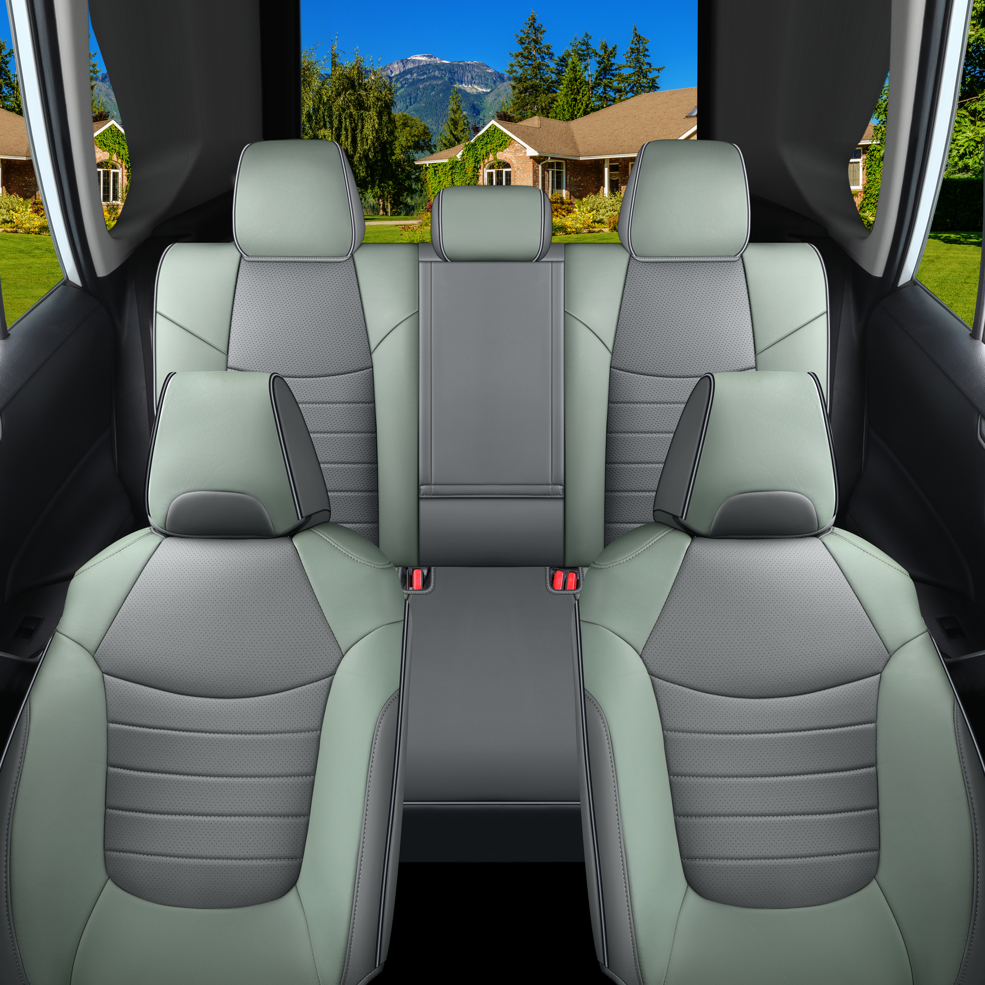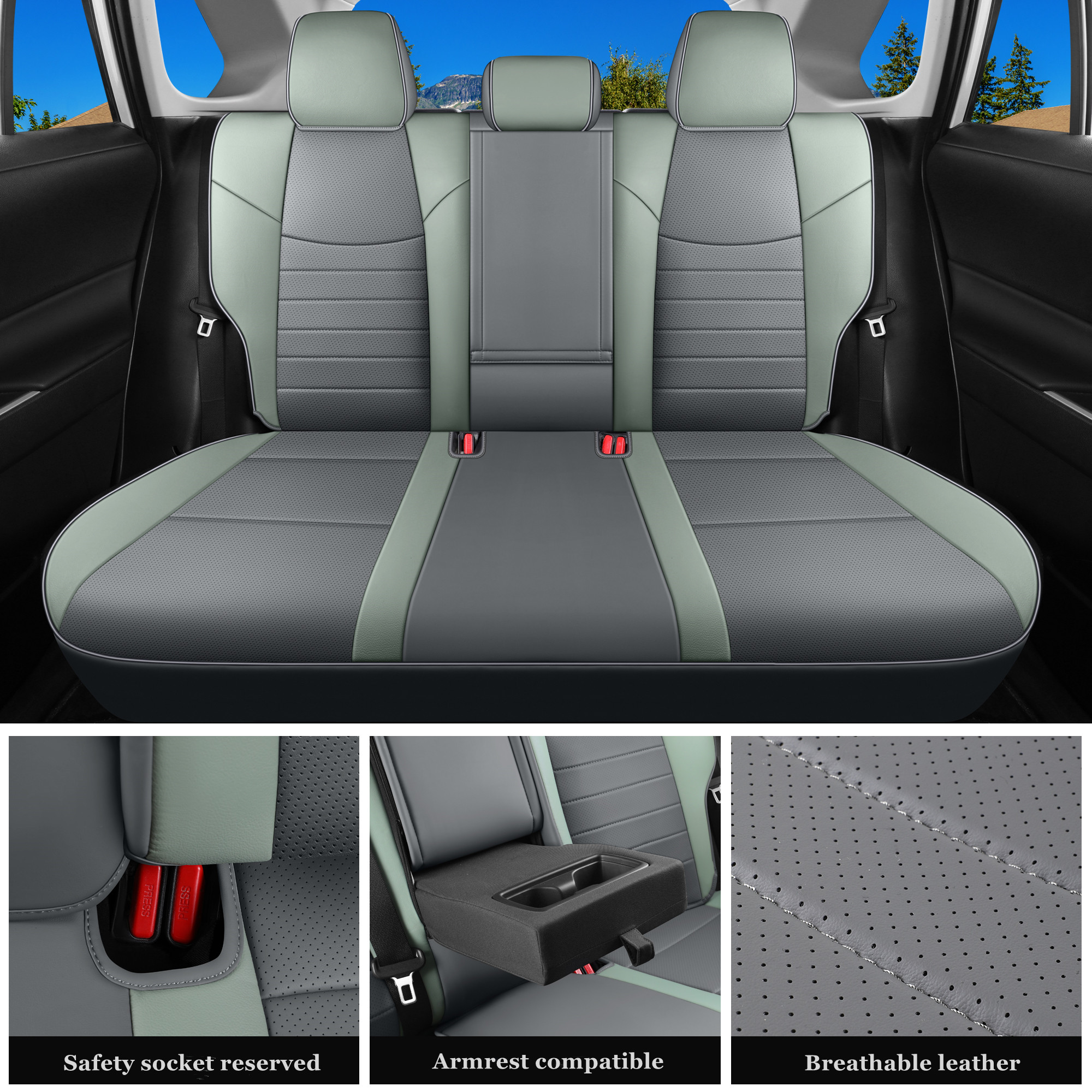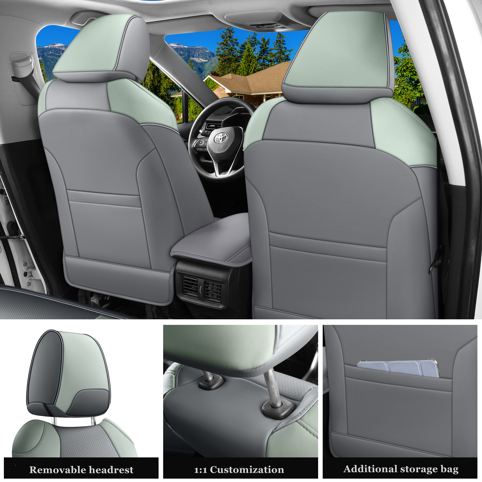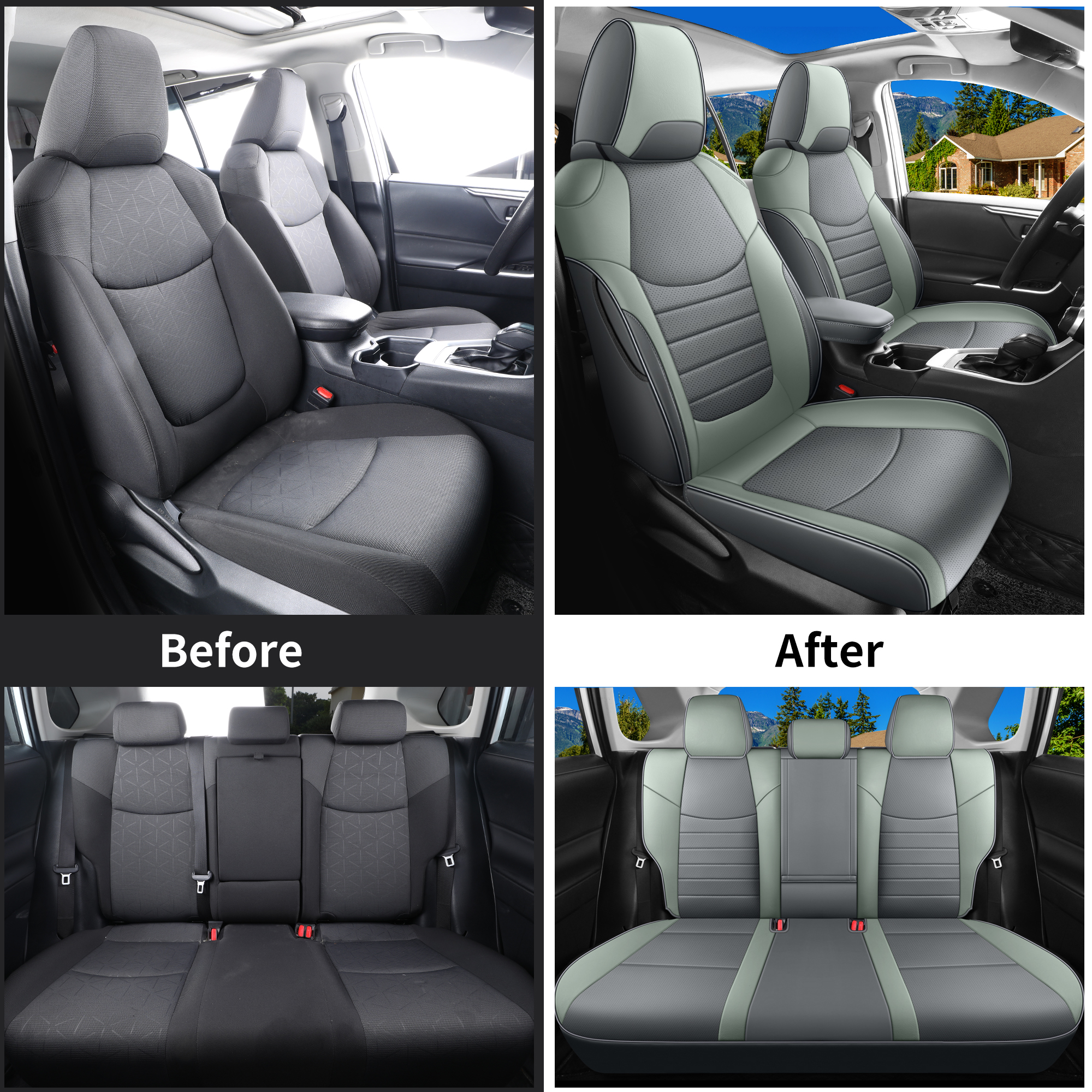 Custom Fit for 2019-2025 Toyota RAV4 Hybrid Gray and Green Leather Rav4 Seat Cover