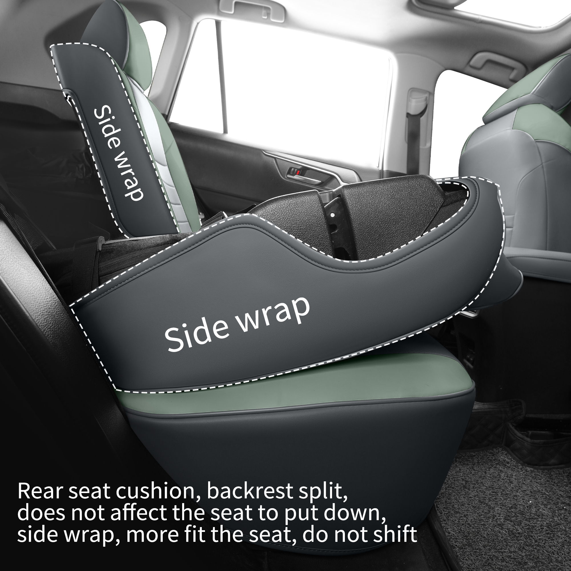 3, Seat covers work with airbags, seatbelts, armrests–protects without blocking functions.