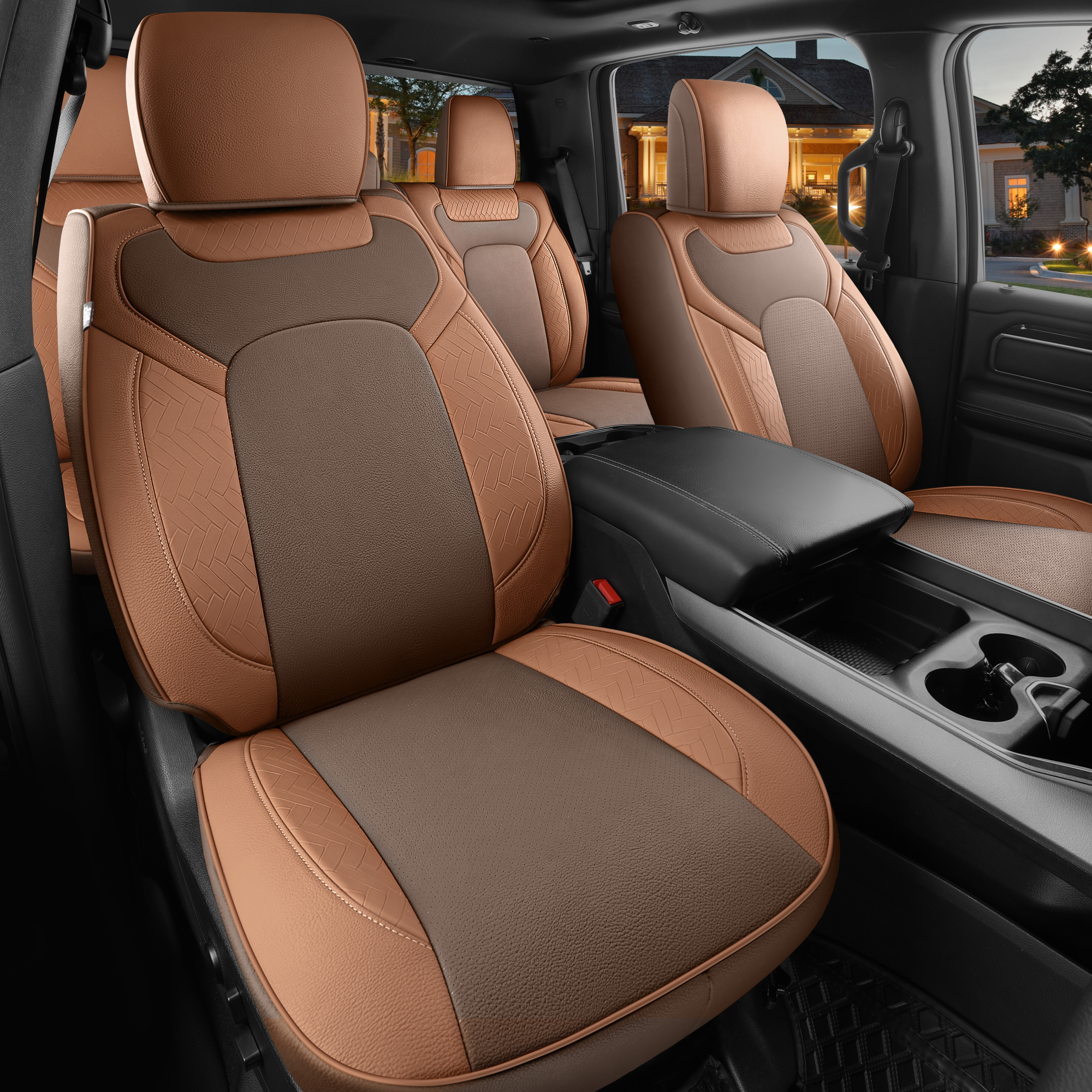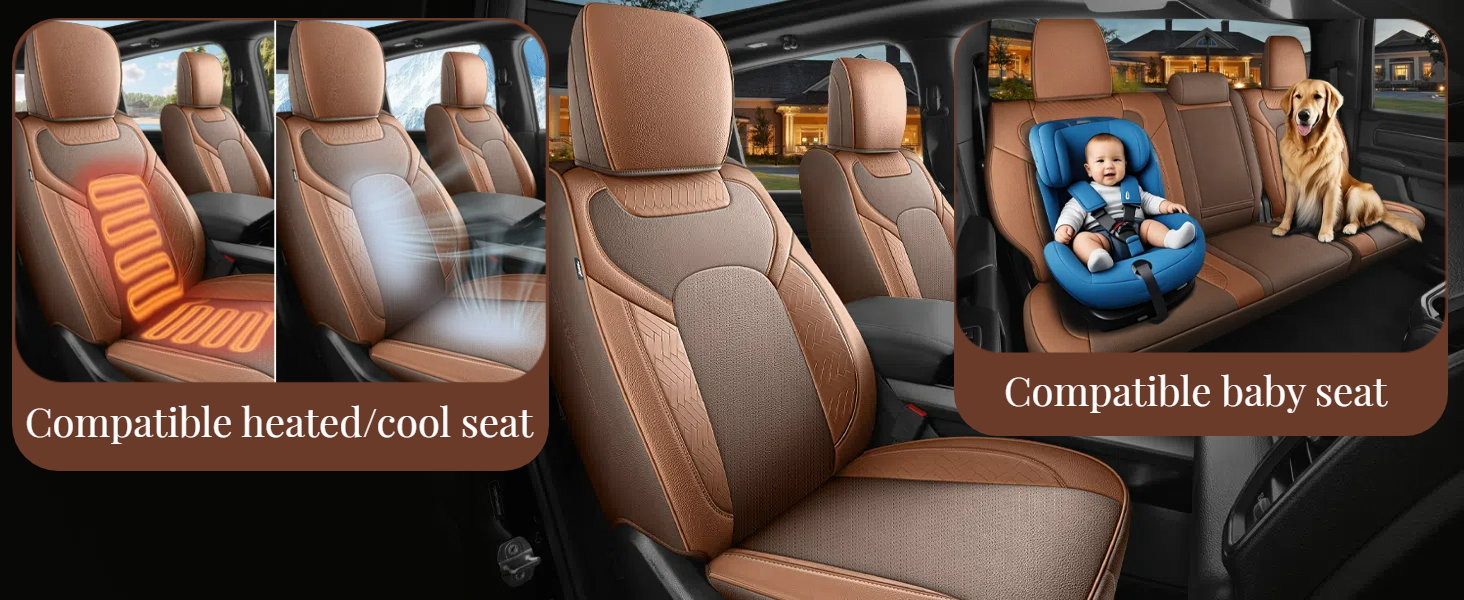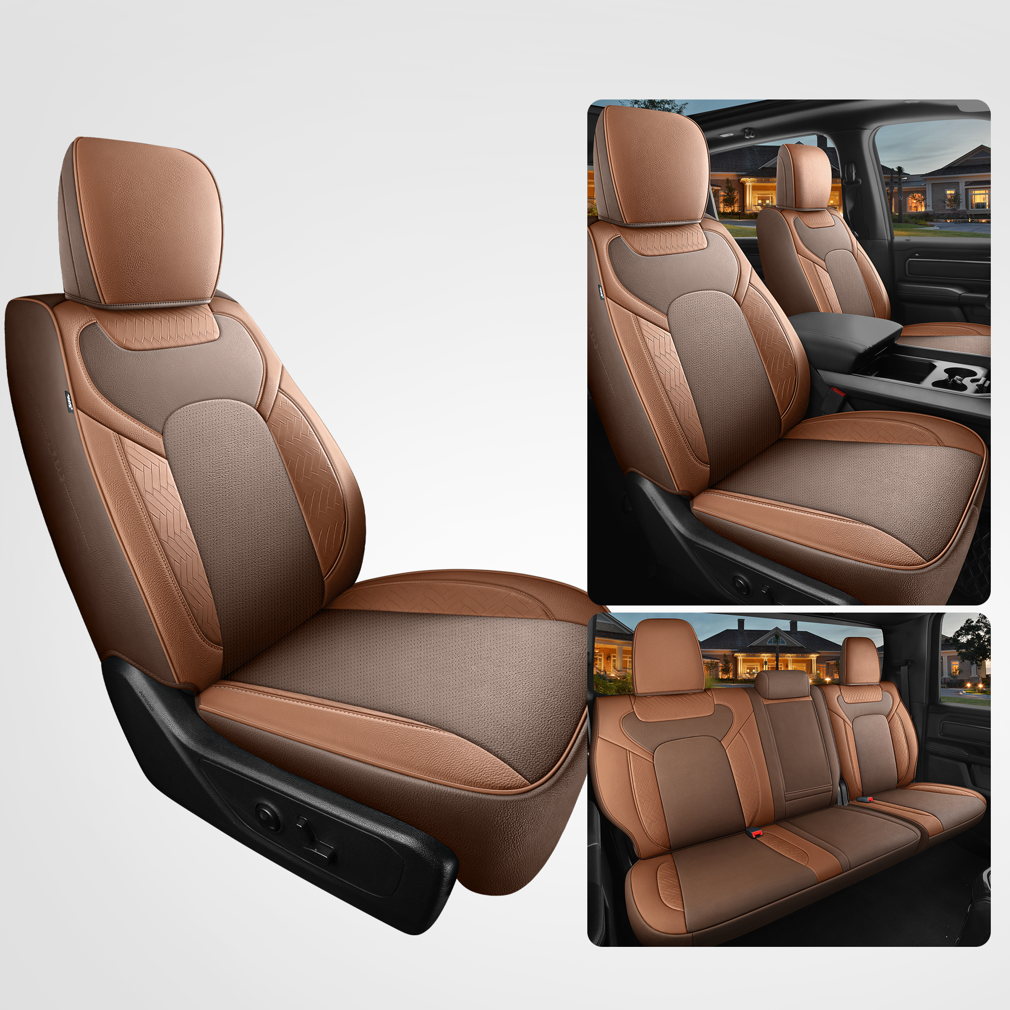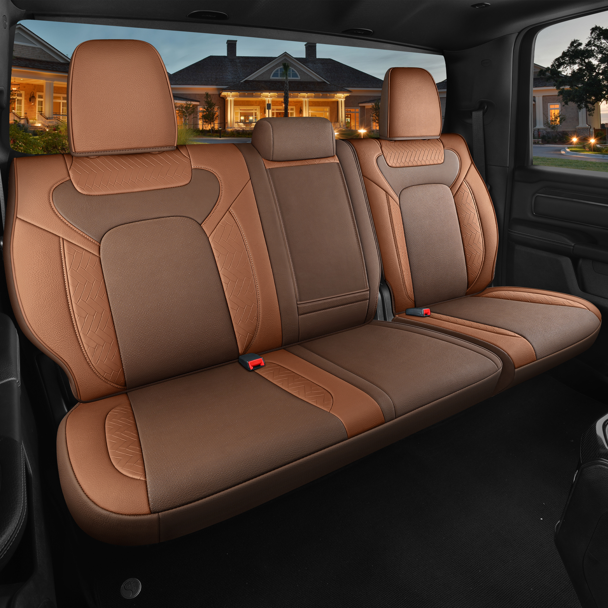 1, Truck seat cover is tailored specifically for Dodge Ram 1500 models from 2019 to 2025, accommodating Mega Cab and Crew Cab configurations with Flat Bench. Please Note: the rear seat cover is 40/60 split designed, not fit for solid back bench seat.