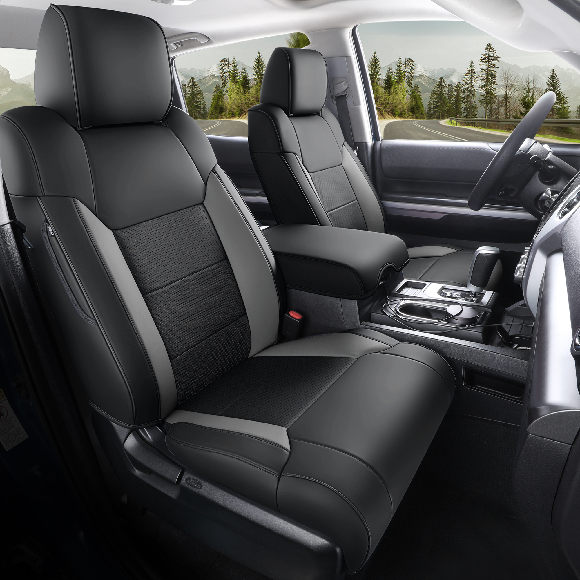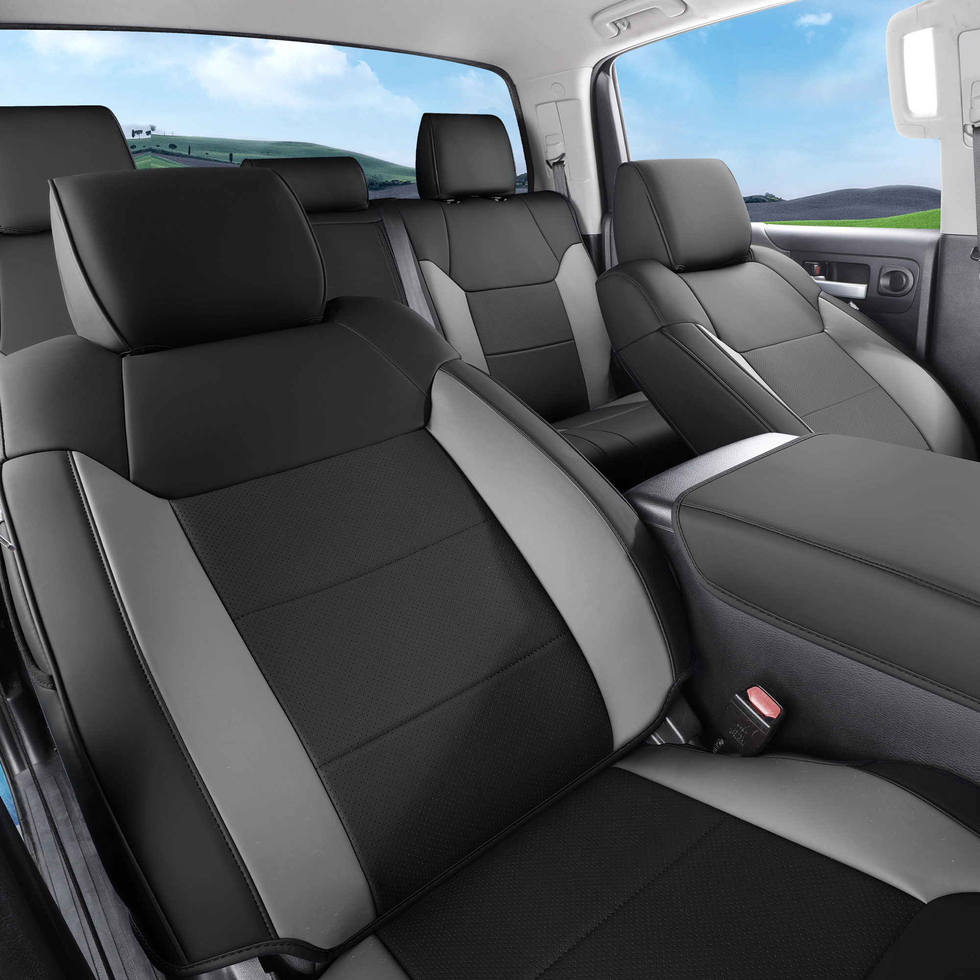Custom Fit for Toyota Tundra 2014-2021 Crewmax Cab SR, SR5, Limited, Platinum,1794 Edition TRD Pro Pickup Trucks Seat Cover Black And Gray Leather Seat Cover Full Set