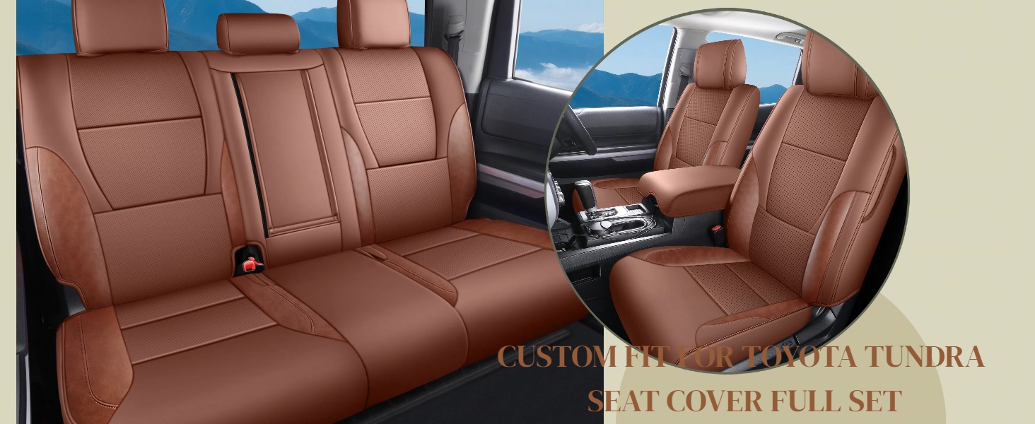 Custom Fit for Toyota Tundra 2022 2023 2024 2025 2026 CrewMax/Double Cab SR, SR5, Limited, Platinum,1794 Edition TRD Pro Pickup Trucks with Rear armrest Brown Leather Seat Cover Full Set