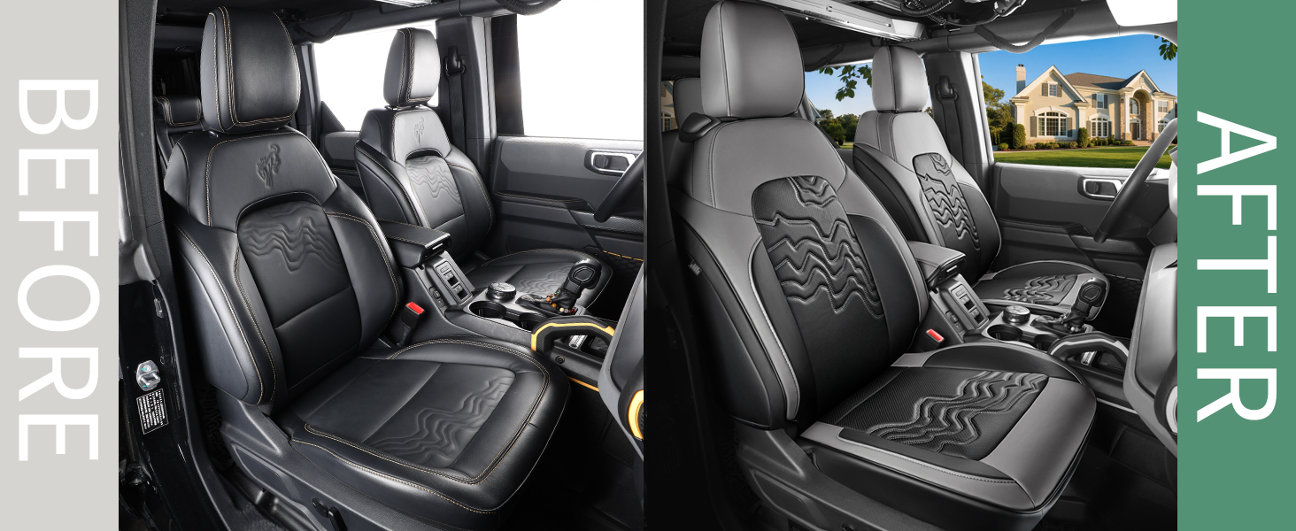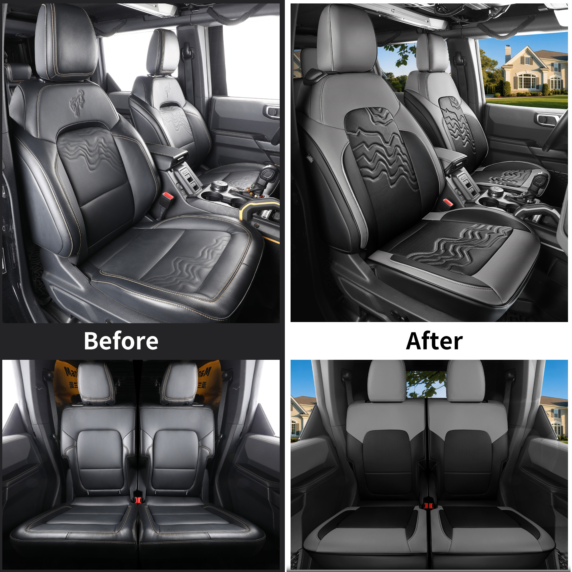 Customized Fit for Ford Bronco 2 Door Seat Cover 2025 2024 2023 2022 2021 Black and Gray Leather Full Set