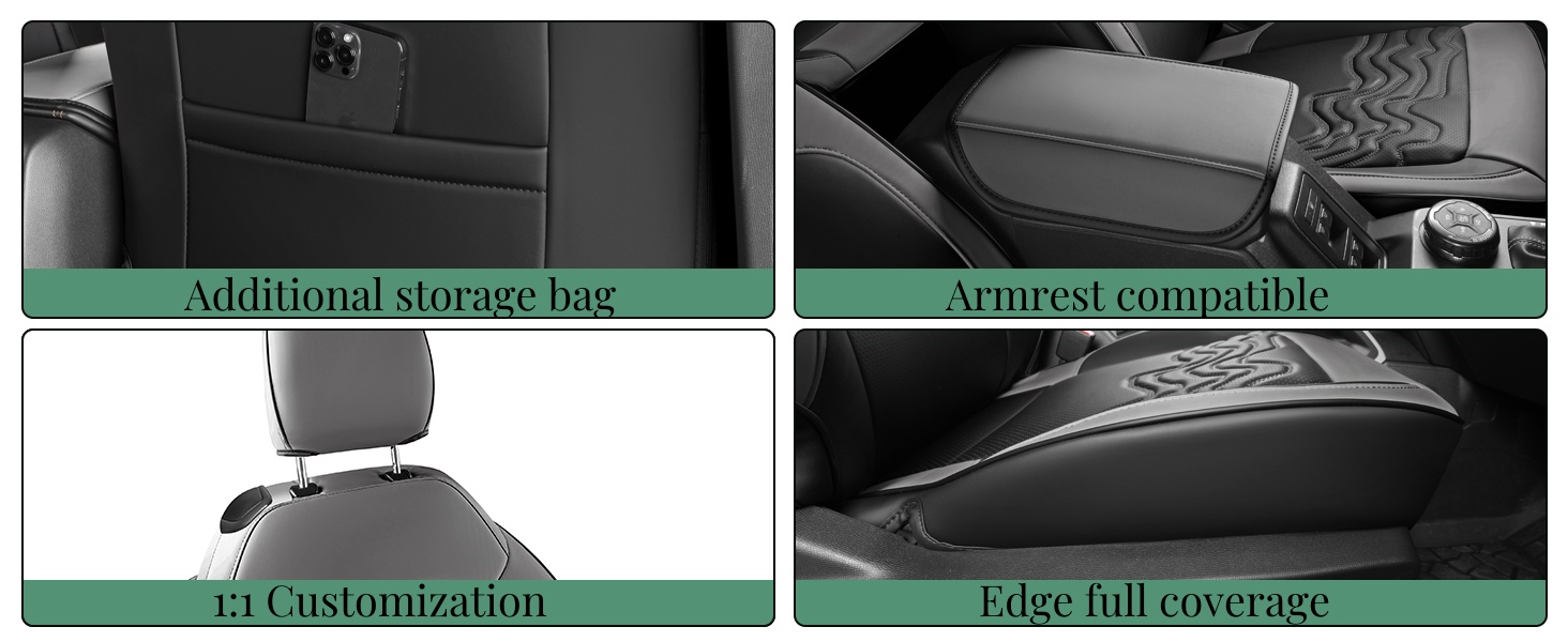4, Compatible with airbags, and easy access to seat back pockets, these covers prioritize safety while enhancing convenience, also it refreshes the look of your interior.
