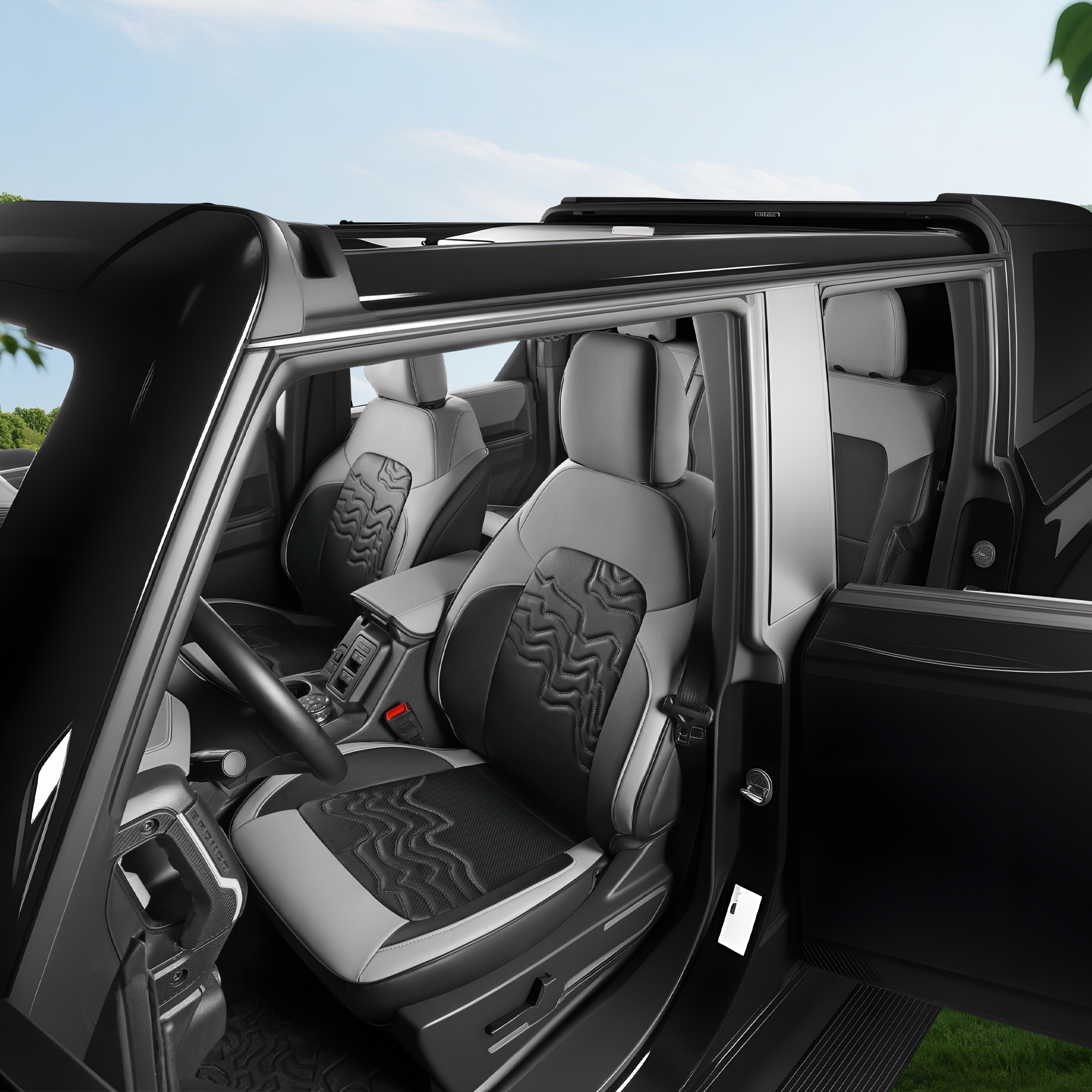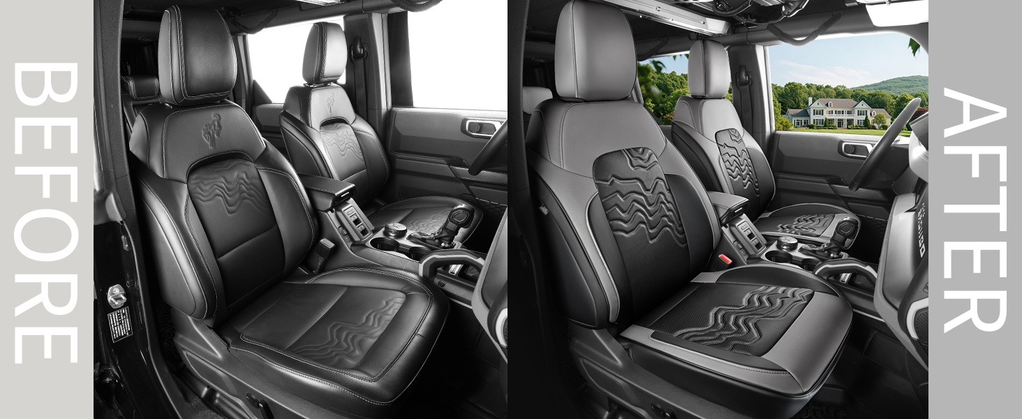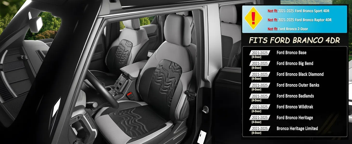 Customized Fit for Ford Bronco Seat Cover 4 Door 2025 2024 2023 2022 2021 Black and Grey Leather Auto Seat Cushion