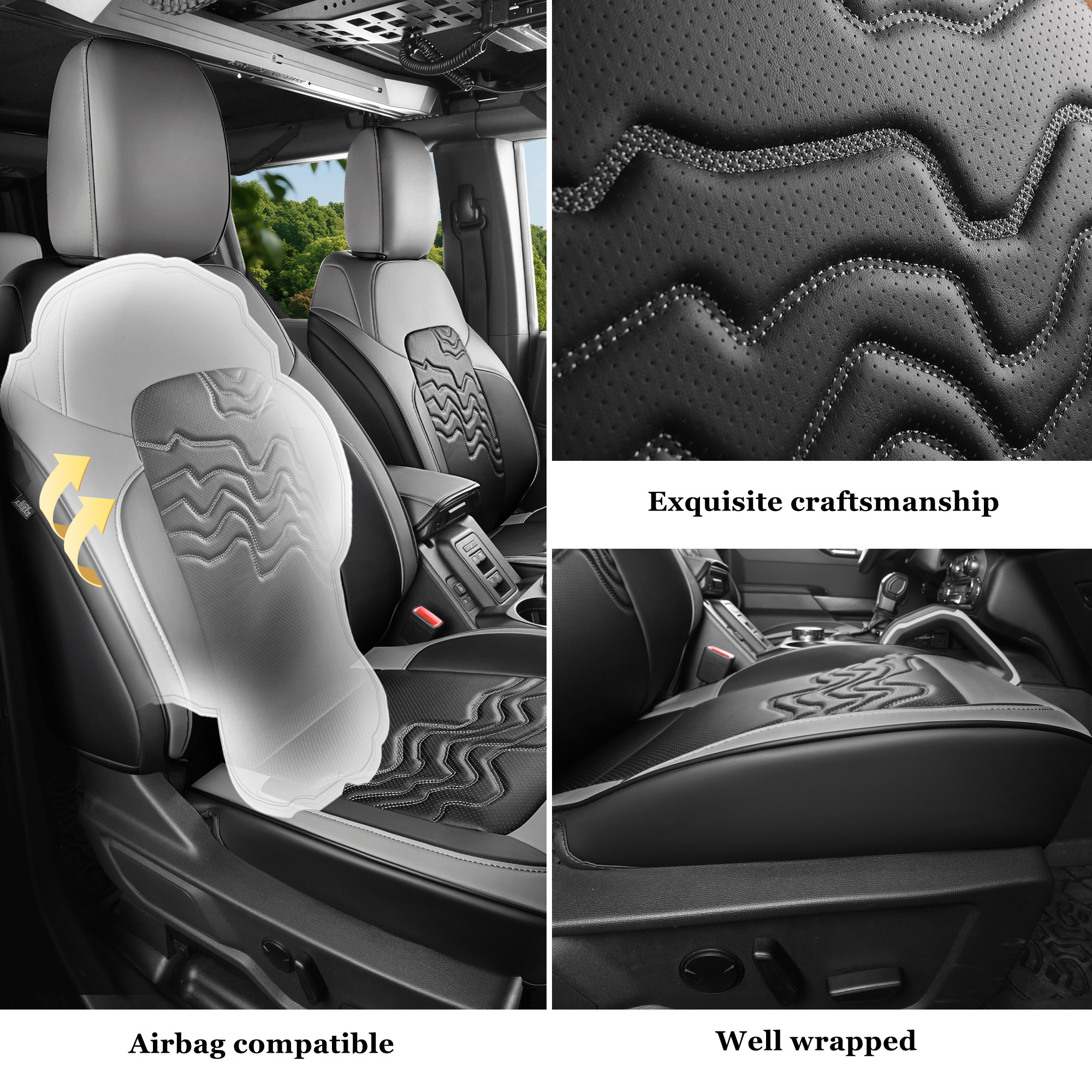 4, Compatible with airbags, and easy access to seat back pockets, the seat covers includes an armrest box cover.