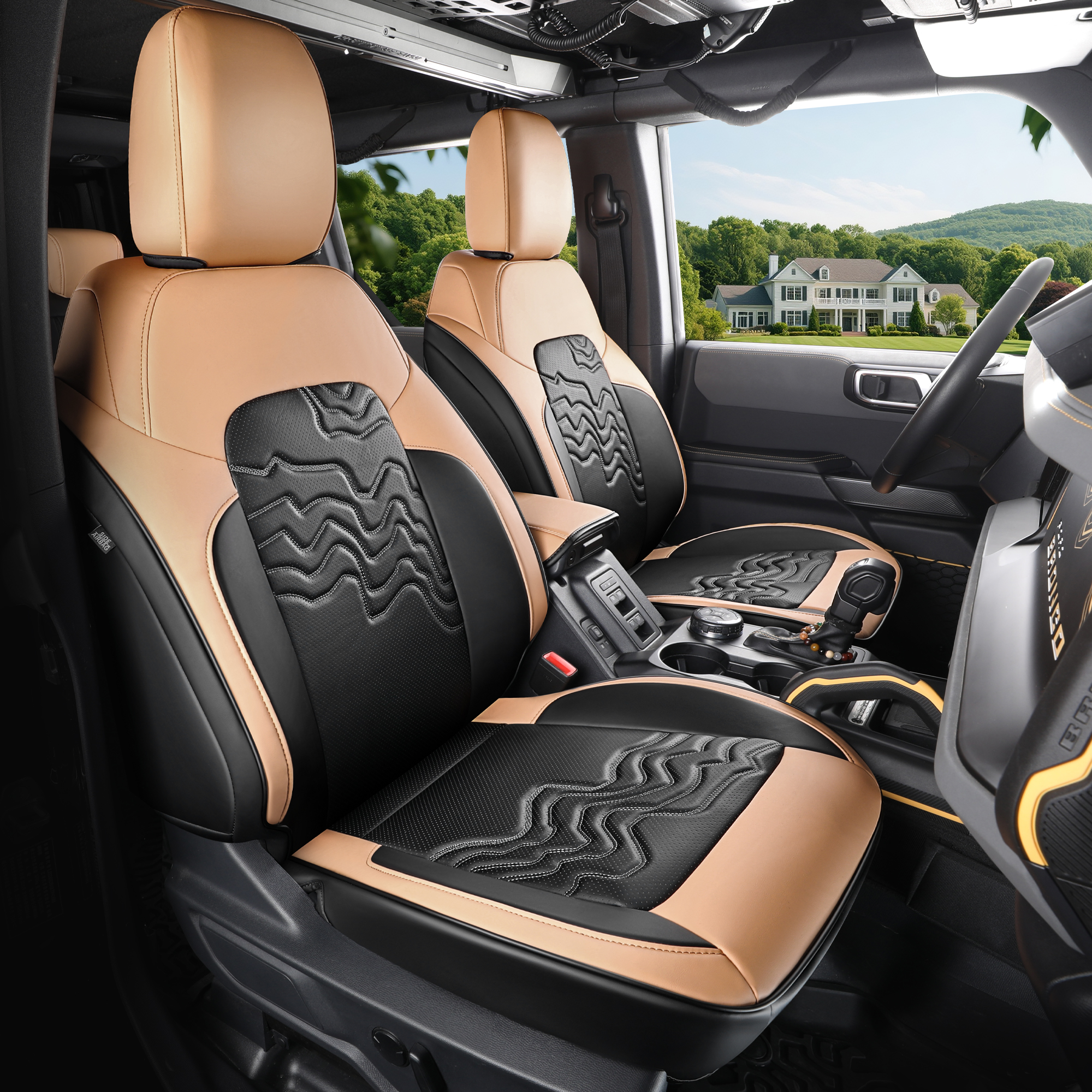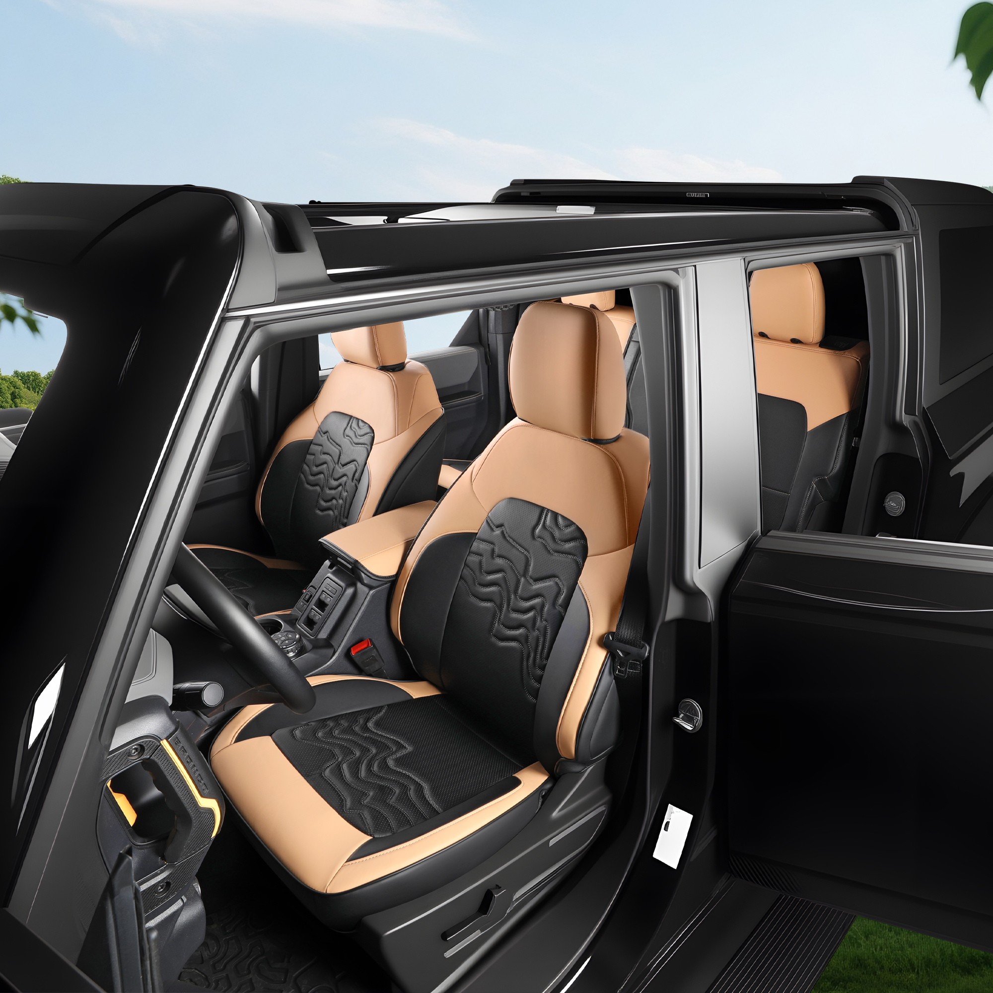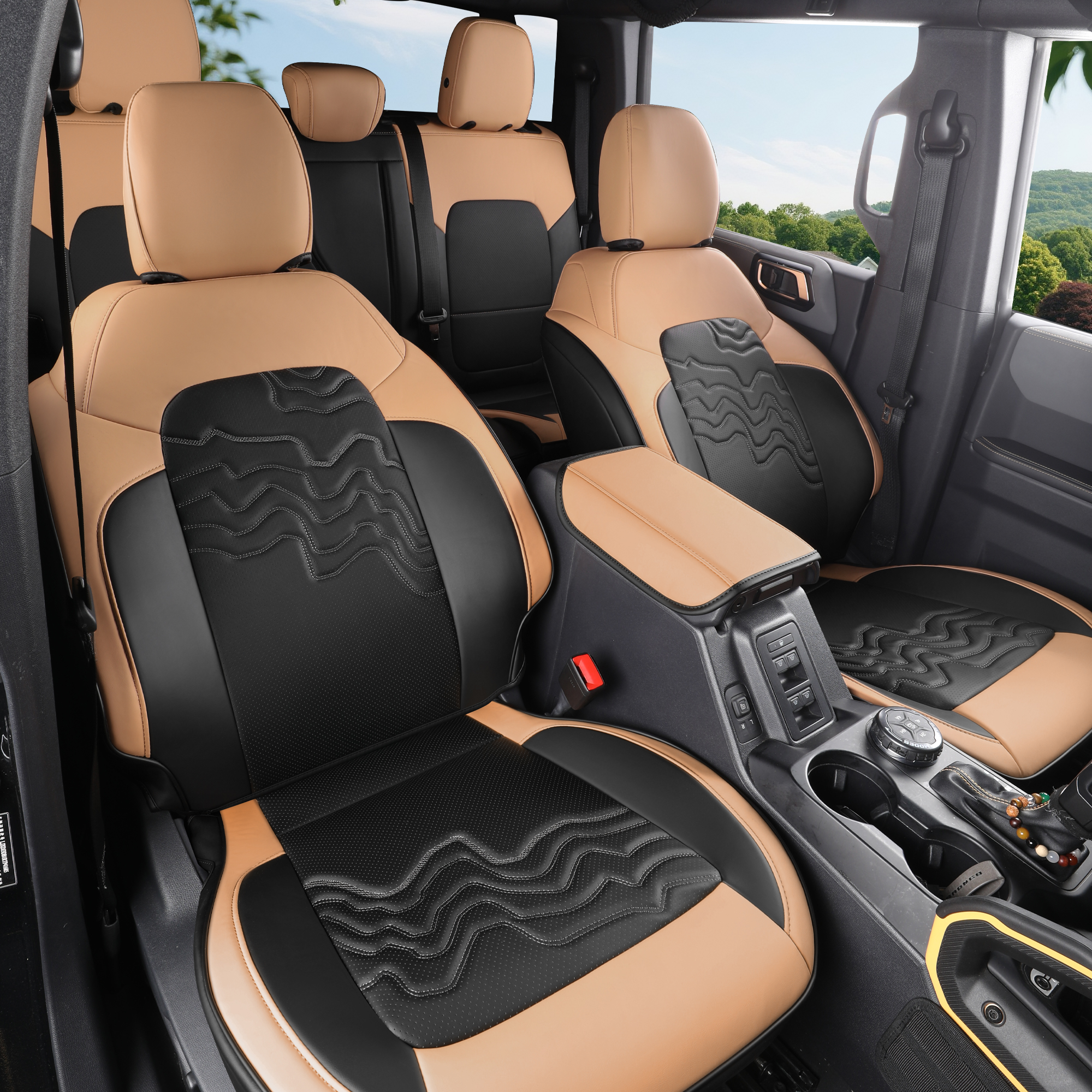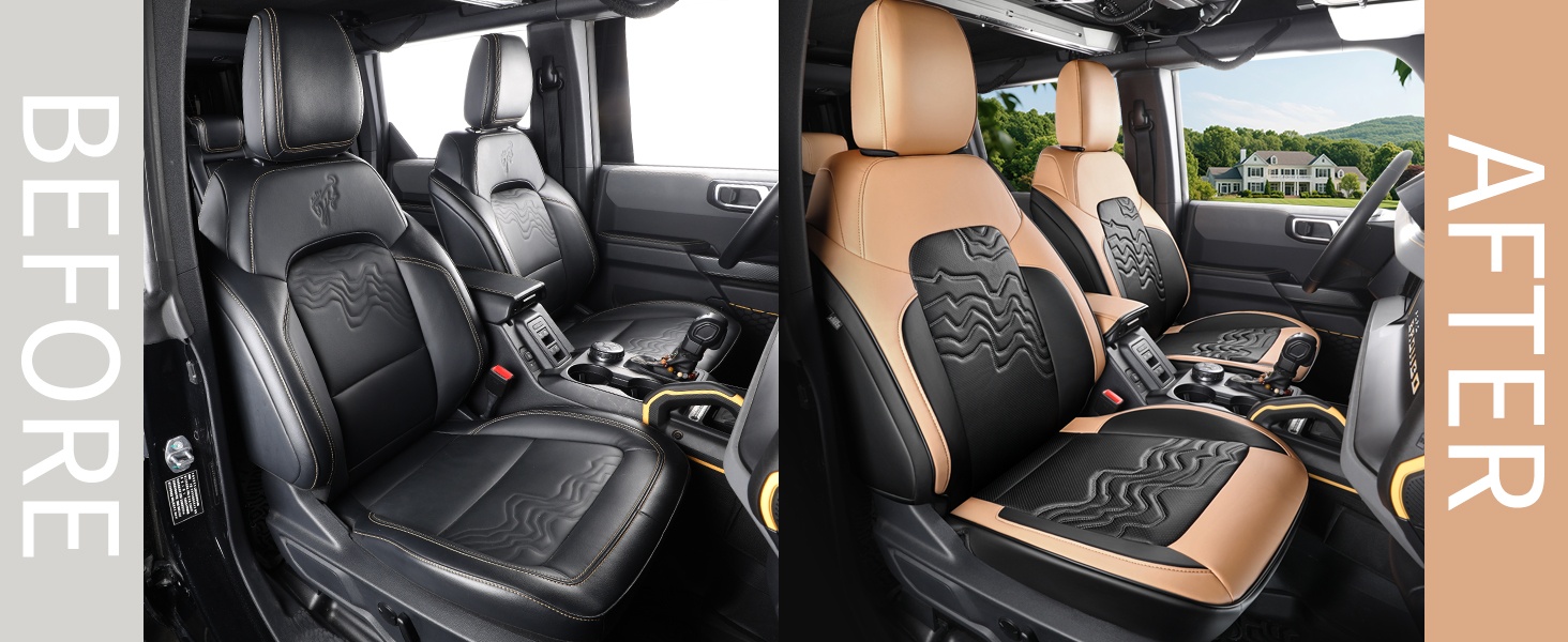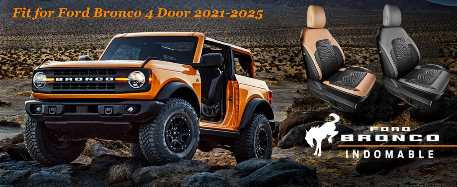 Customized Fit for Ford Bronco Seat Cover 4 Door 2025 2024 2023 2022 2021 Black and Orange Leather Interior Accessories