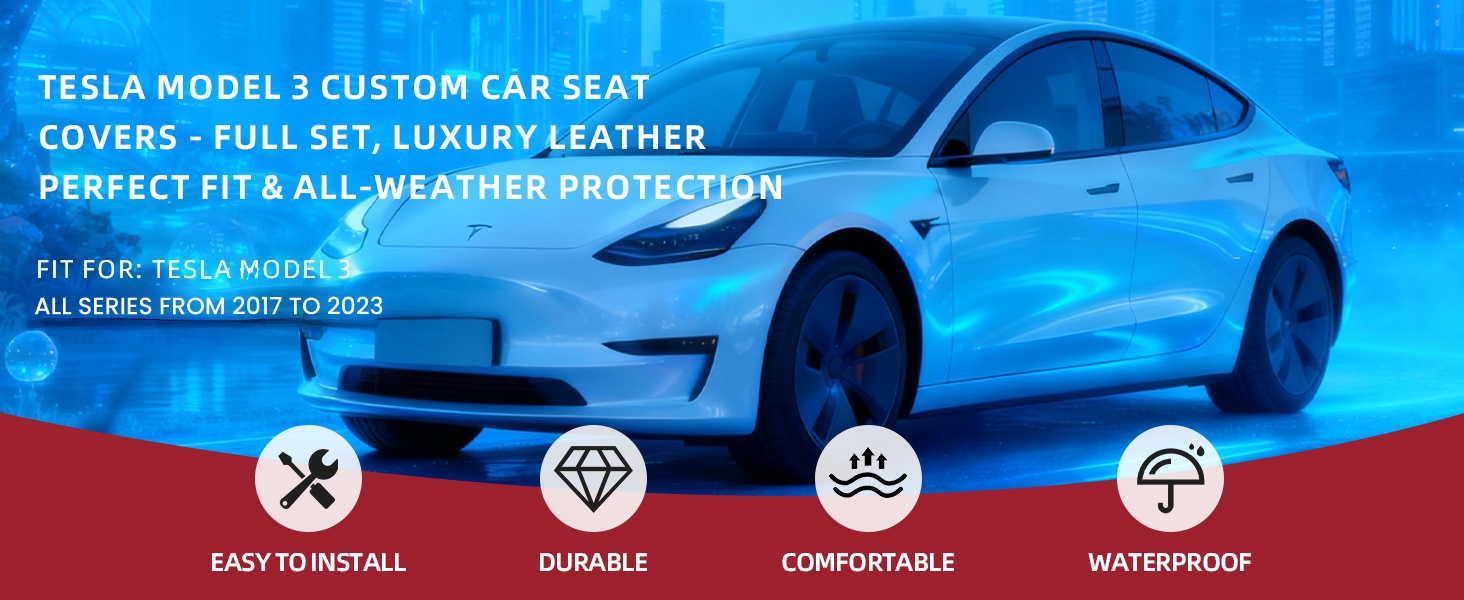 1.Fit for Tesla Model 3(2017 2018 2019 2020 2021 2022 2023). It is designed according to the original vehicle, total 12pcs: 4 front seat covers, 1 armrest cover, 7 rear seat covers.