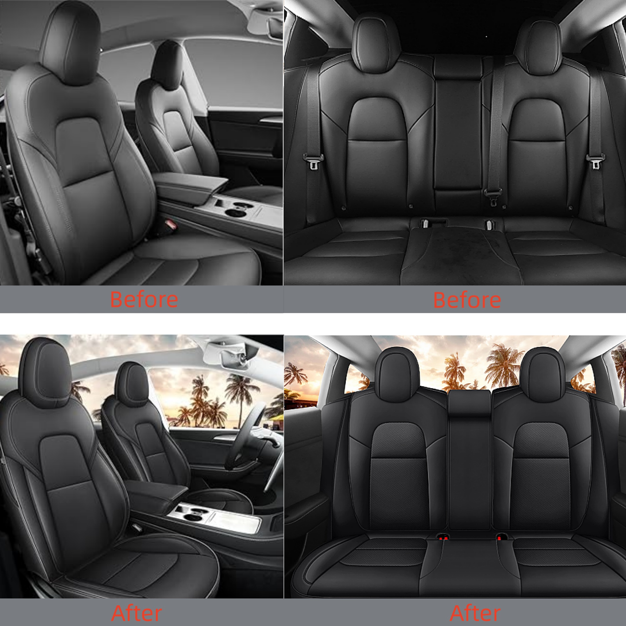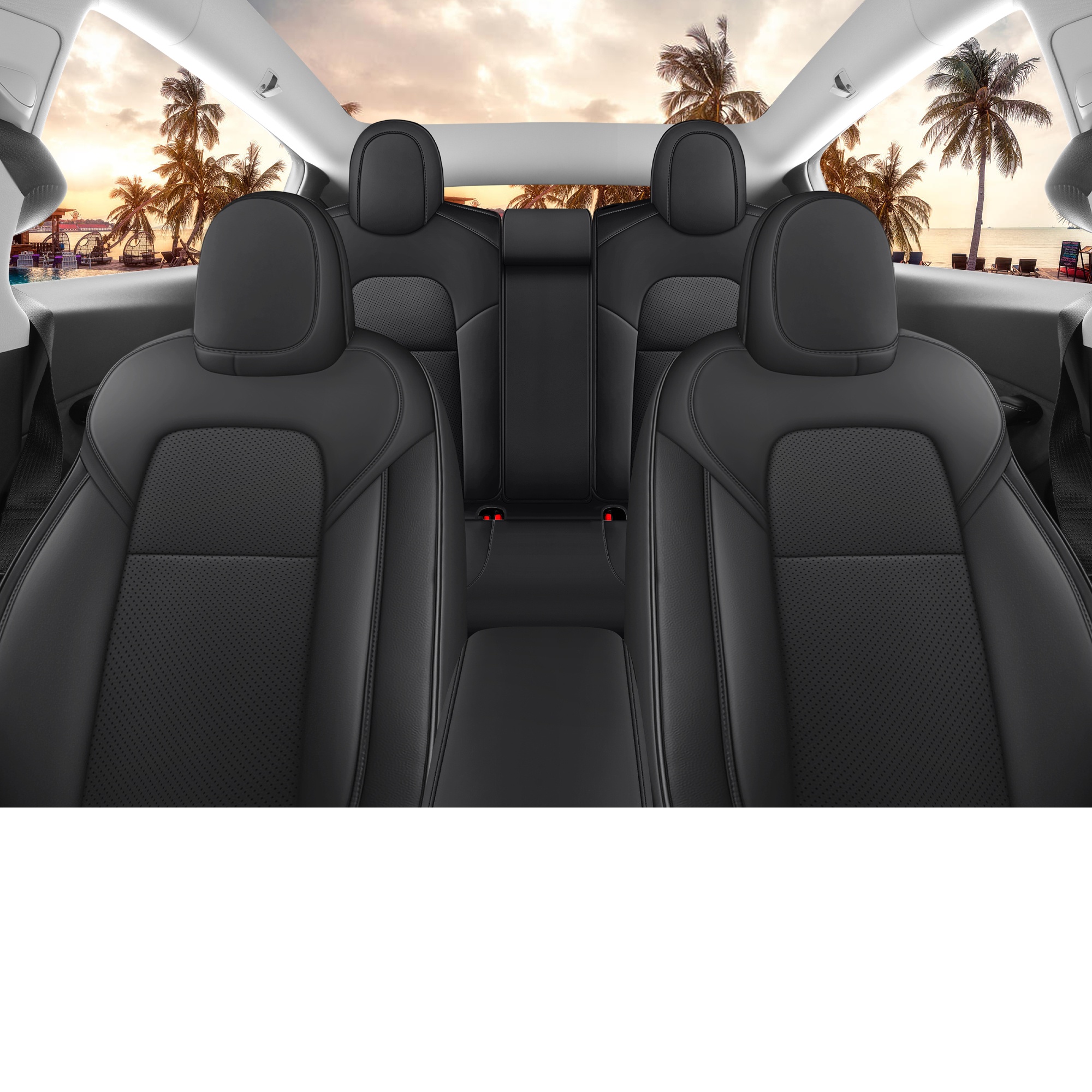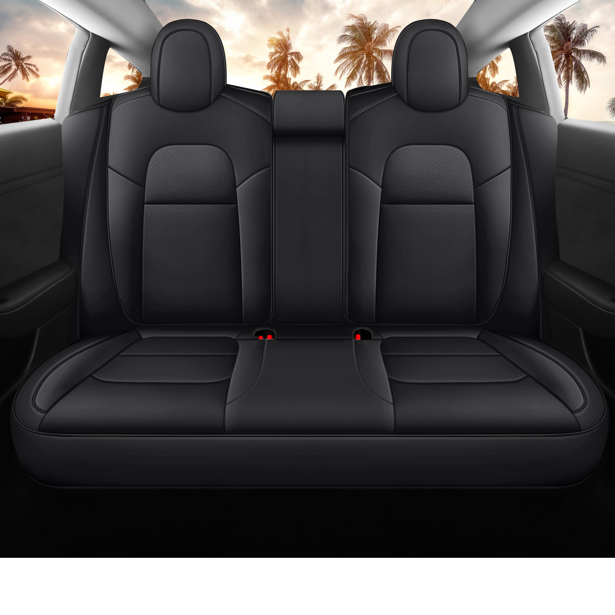 Customized Fit for Tesla Model 3 2017 2018 2019 2020 2021 2022 2023 Black Car Seat Cover Waterproof Nappa Leather Seat Cover Full Set