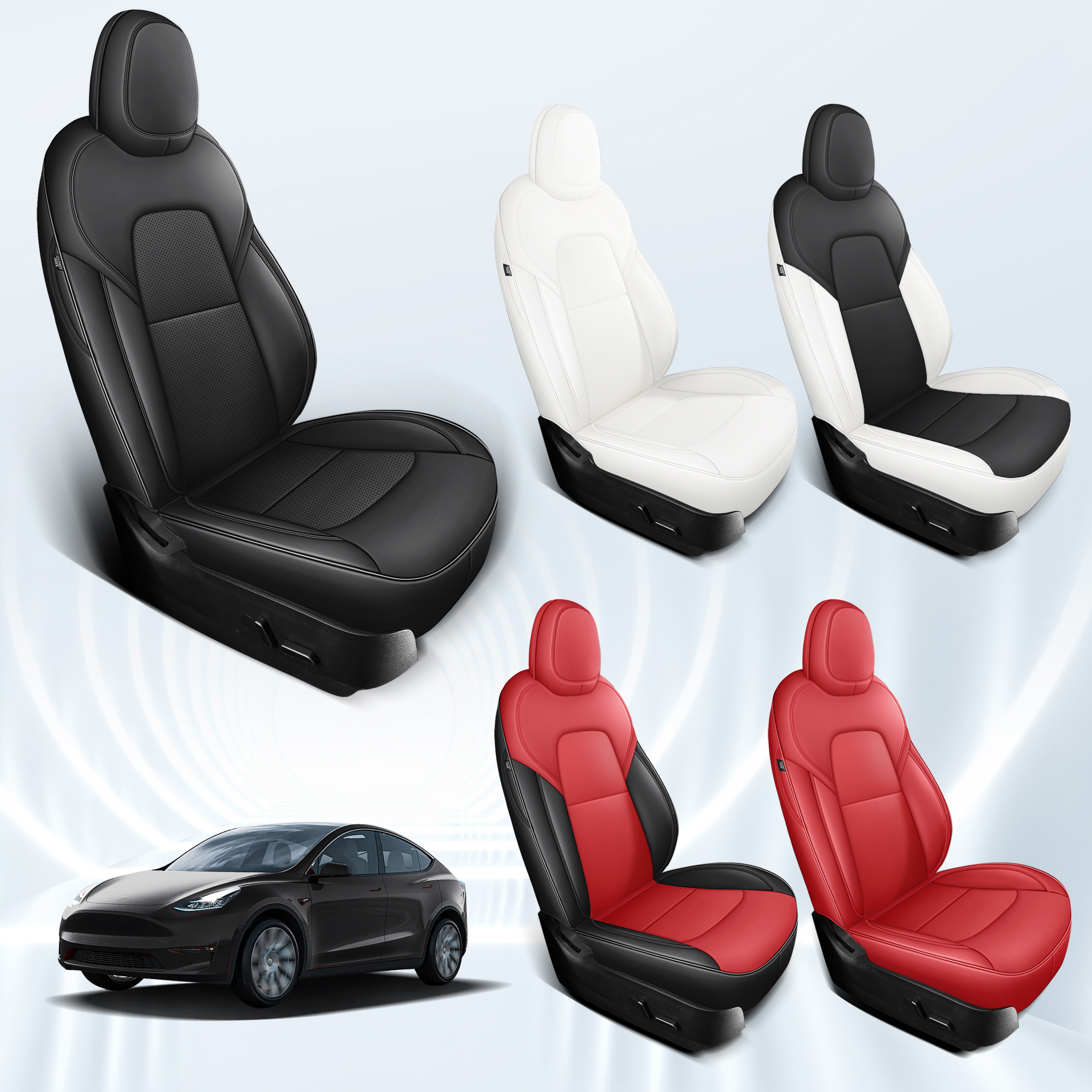Customized Fit for Tesla Model Y 2020-2024 Black Car Seat Cover Waterproof Nappa Leather Seat Cover Full Set