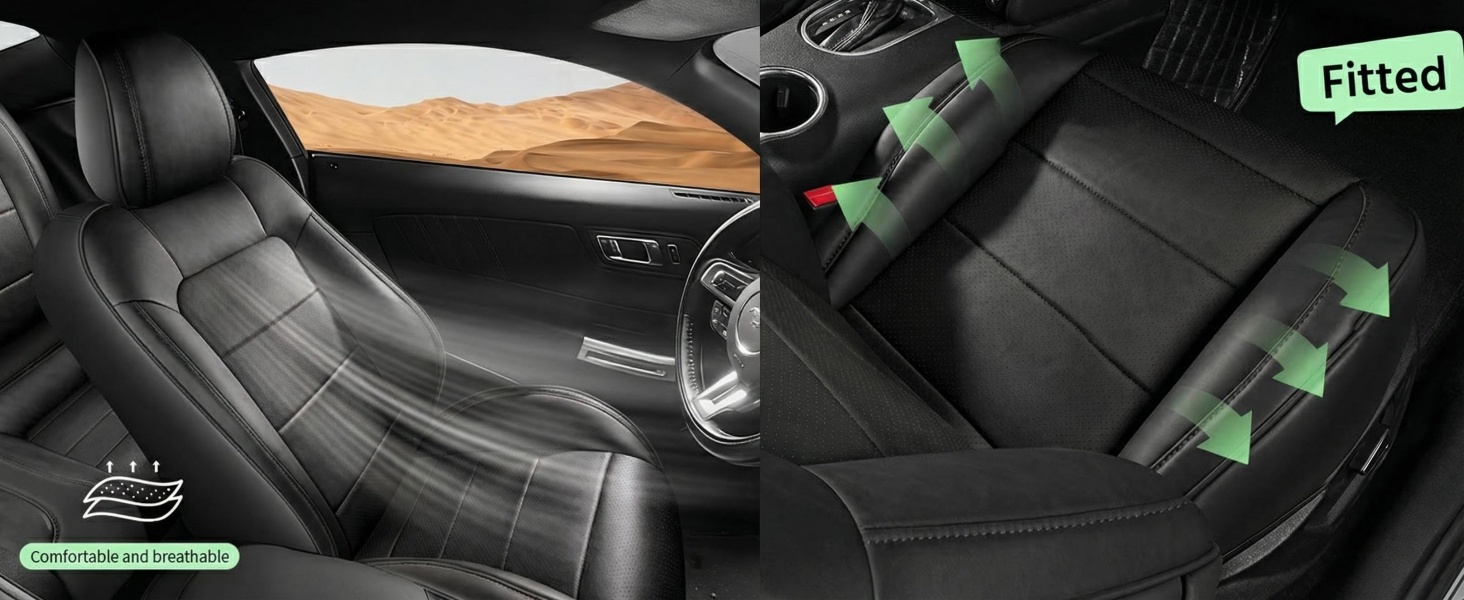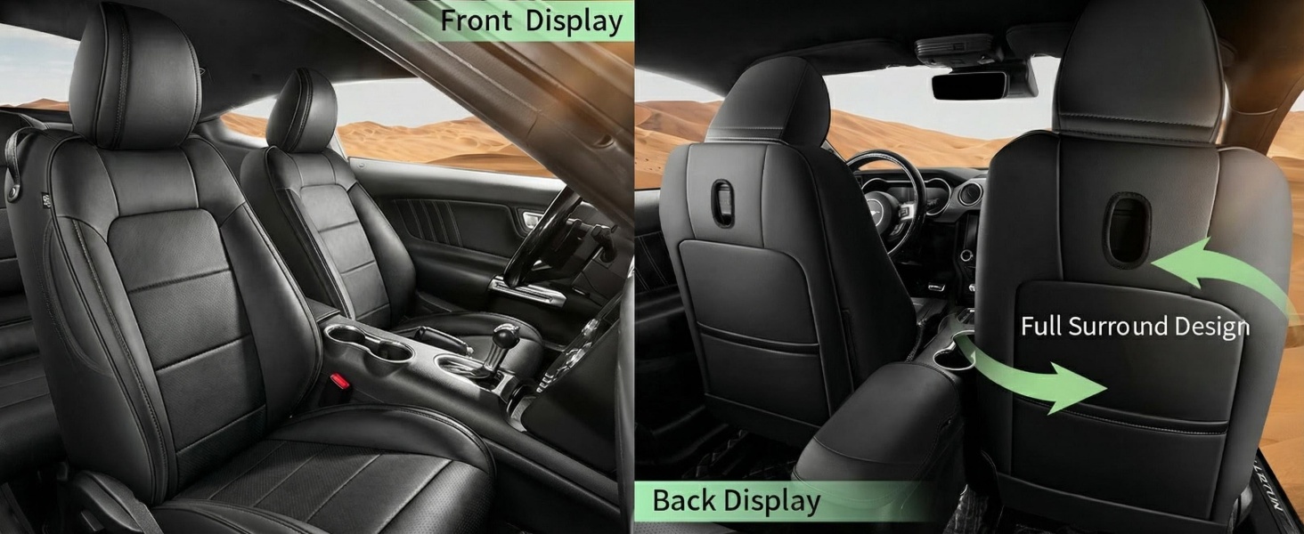 1.Customized fit for ford Mustang Coupe Hardtop 2015-2026, matches the original mustang seat structure(not suitable for Mustang convertibles)