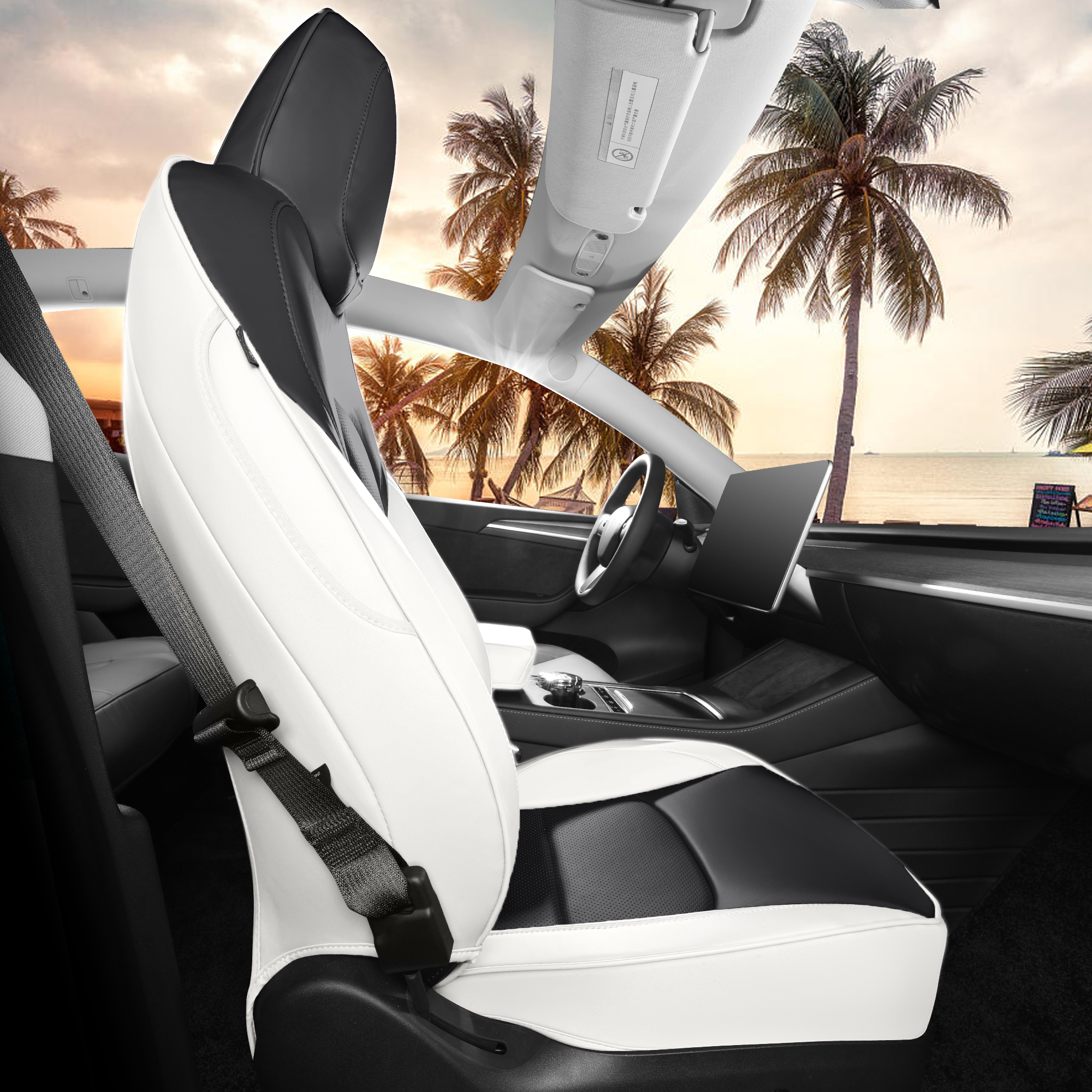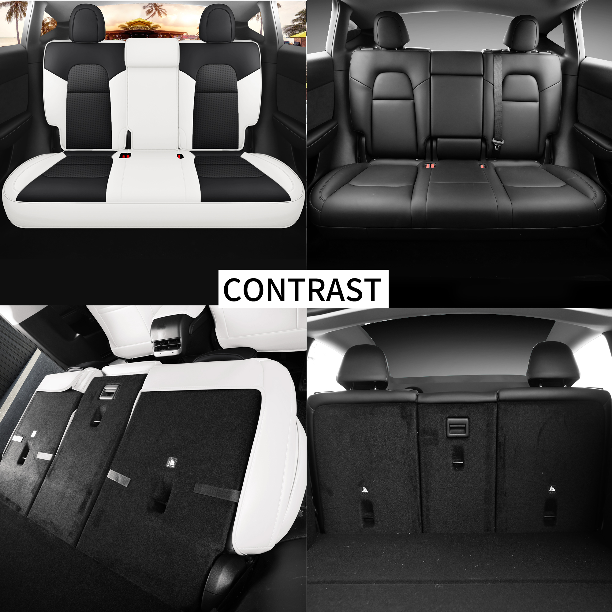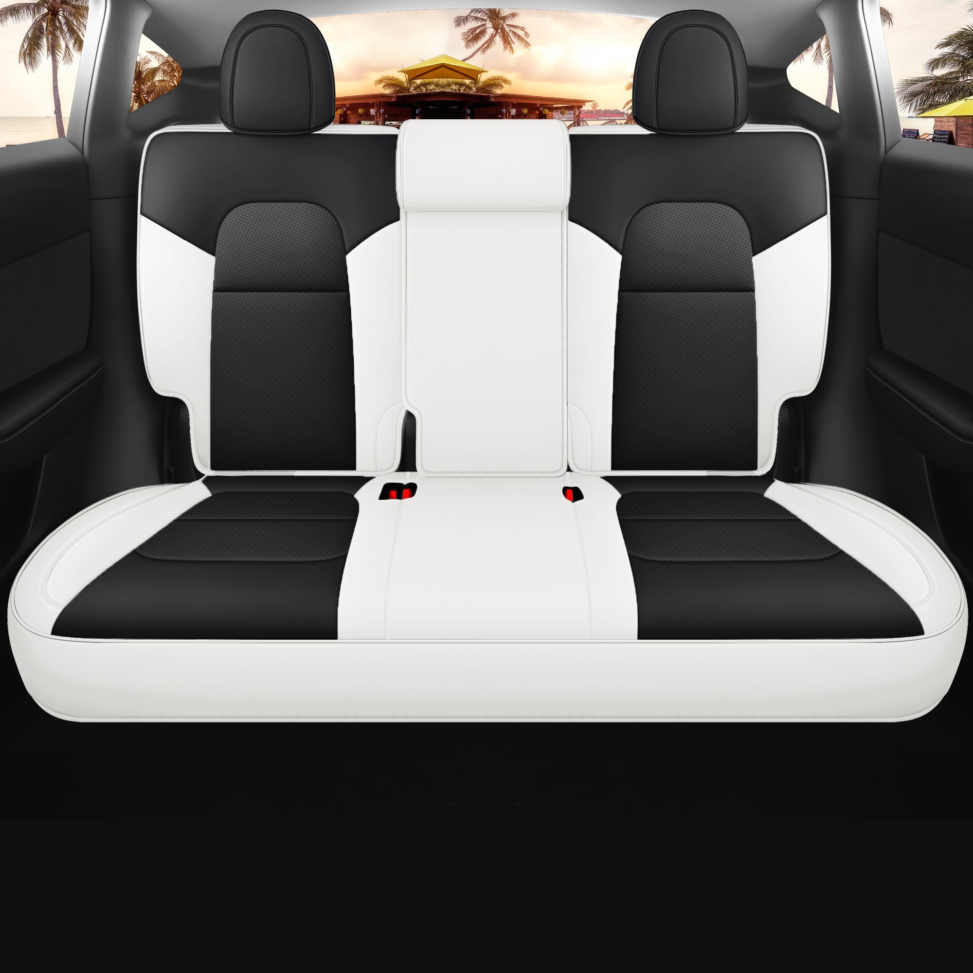 Customized Fit Tesla Model Y Seat Cover 2020 2021 2022 2023 2024 Black+White Seat Cover Waterproof Nappa Leather Cushion Cover Full Set Airbag Compatible