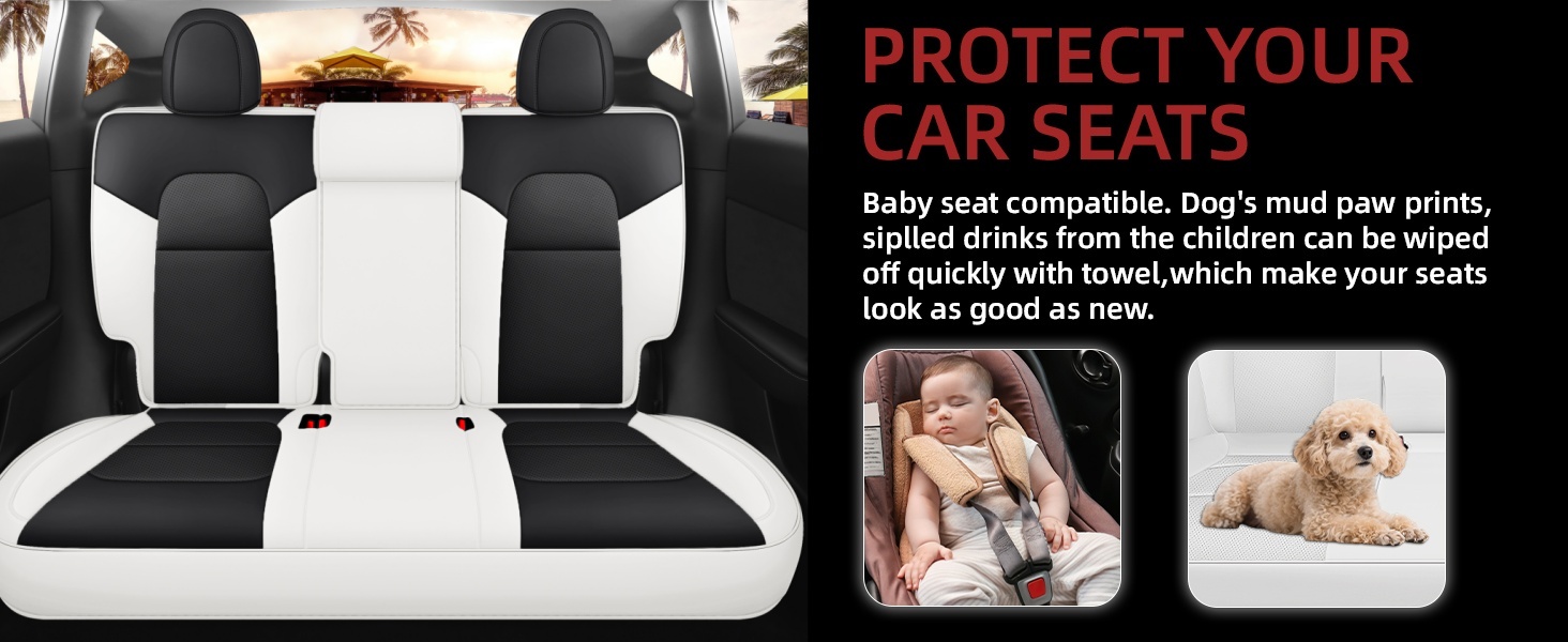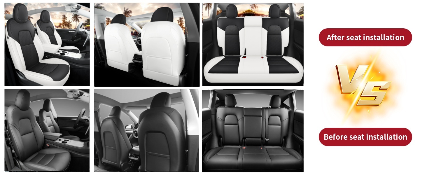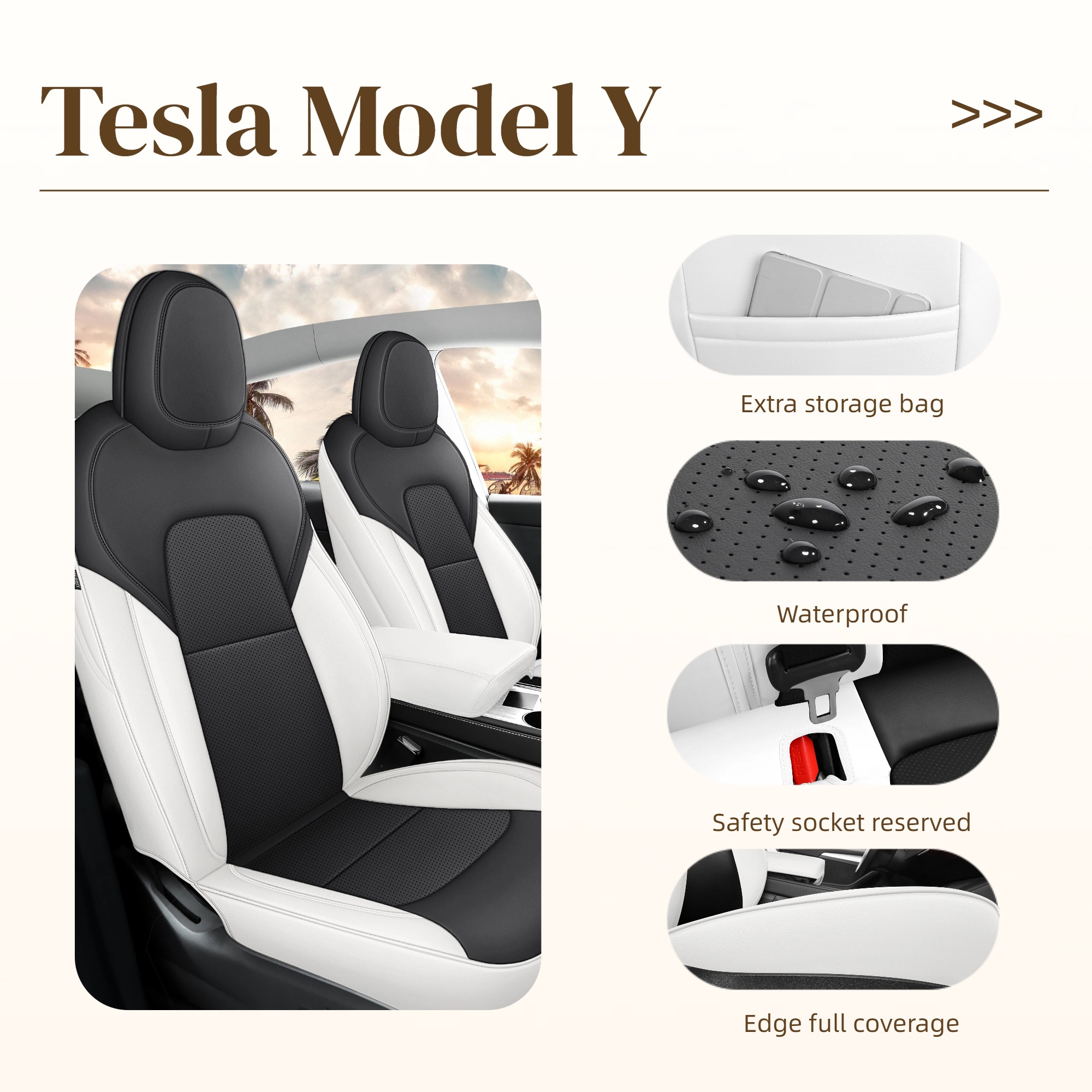Customized Fit Tesla Model Y Seat Cover 2020 2021 2022 2023 2024 Black+White Seat Cover Waterproof Nappa Leather Cushion Cover Full Set Airbag Compatible