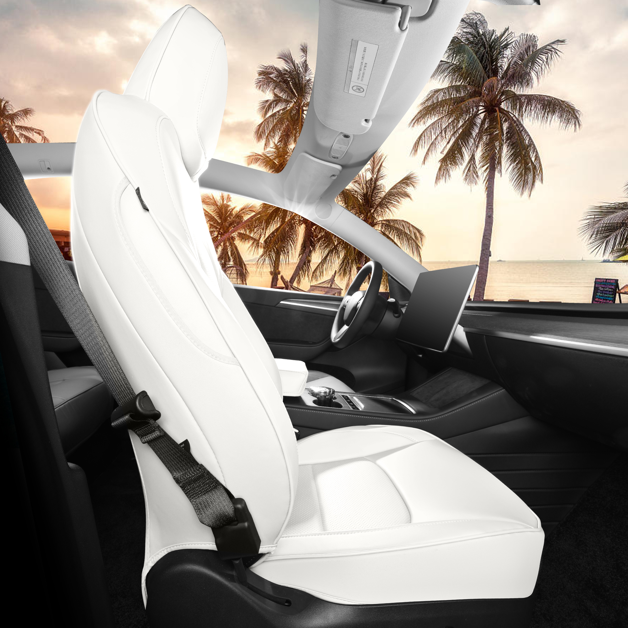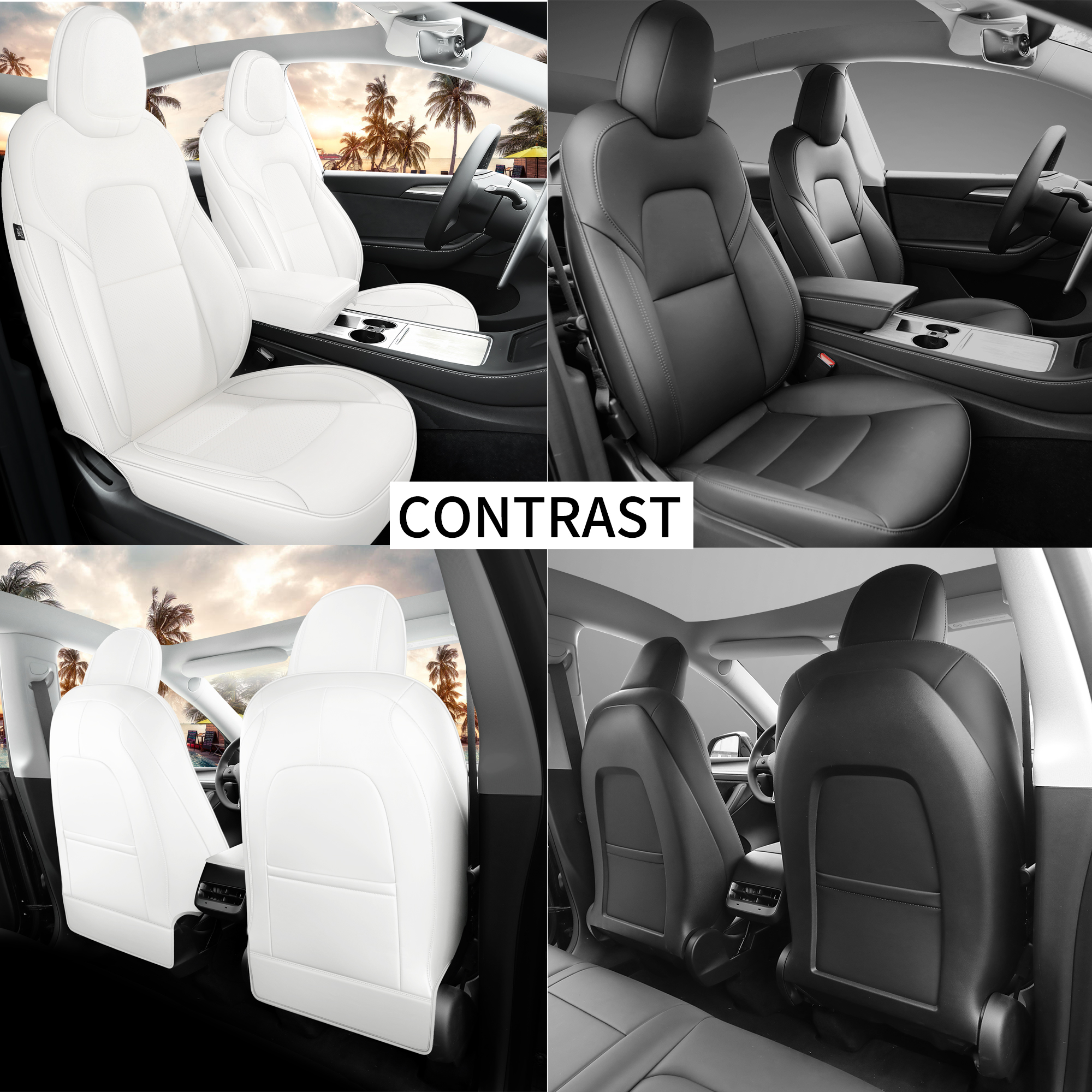 Customized Fit Tesla Model Y Seat Cover 2020 2021 2022 2023 2024 White Seat Cover Nappa Leather Car Interior Seat Airbag Compatible Cushion Cover Full Set