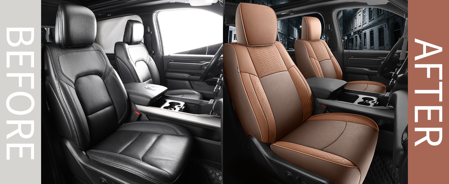 4, Specifically tailored to fit snugly all details of car seat covers for Dodge Ram, and ensure the full function, not affecting at all the use of airbag, armrests, safety belt, child safety seats and seat adjustments. full wrap front seats come with seat back organizer for improved user convenience.