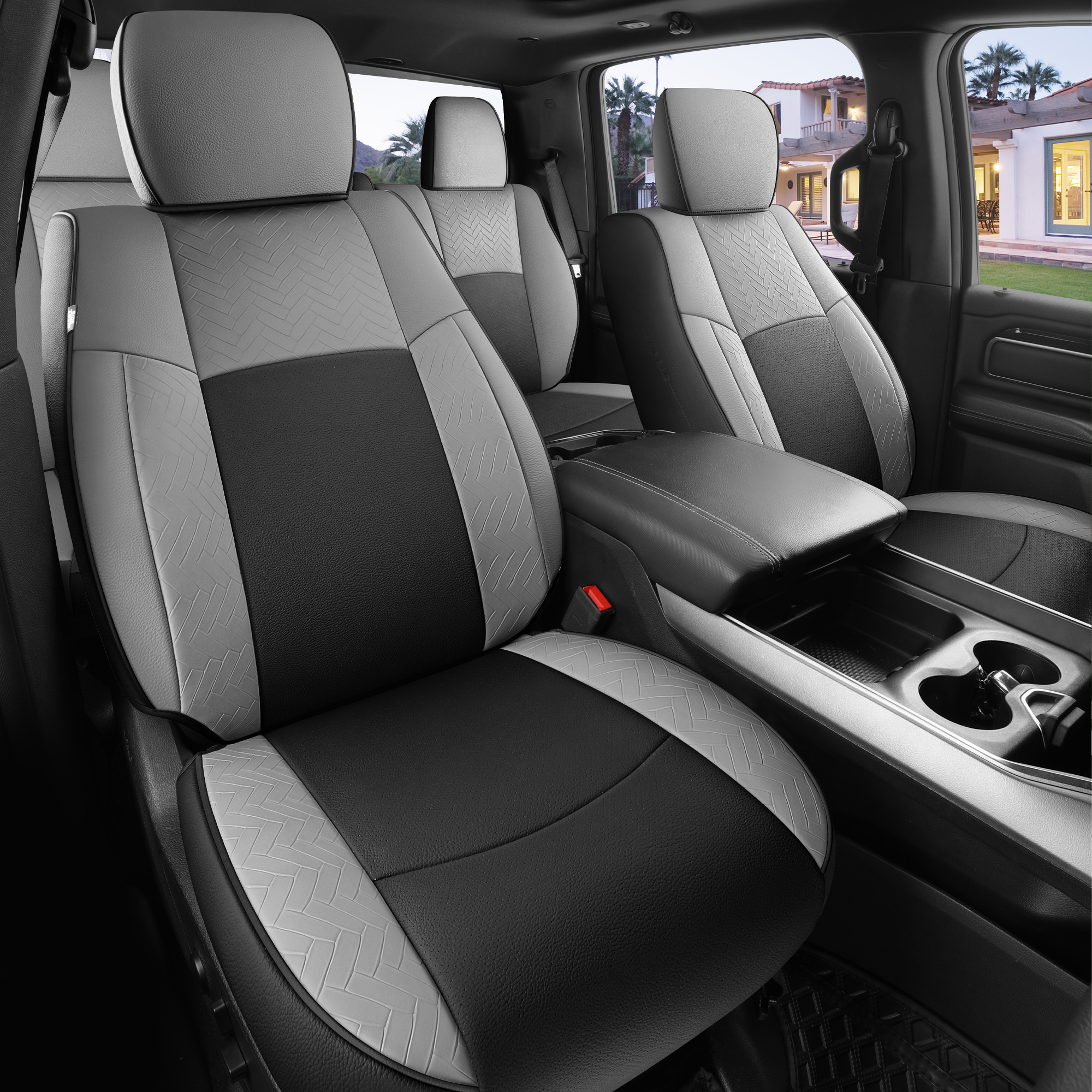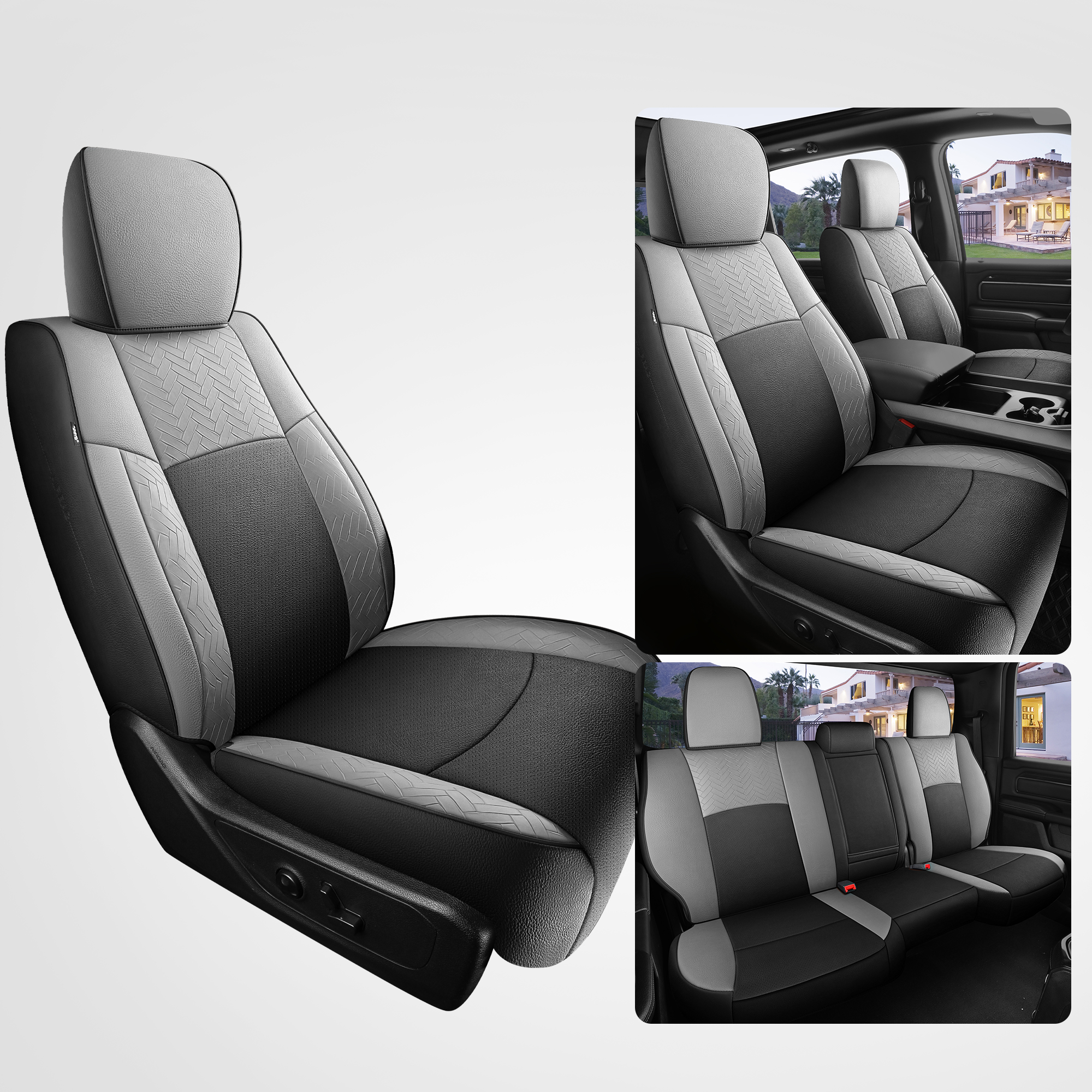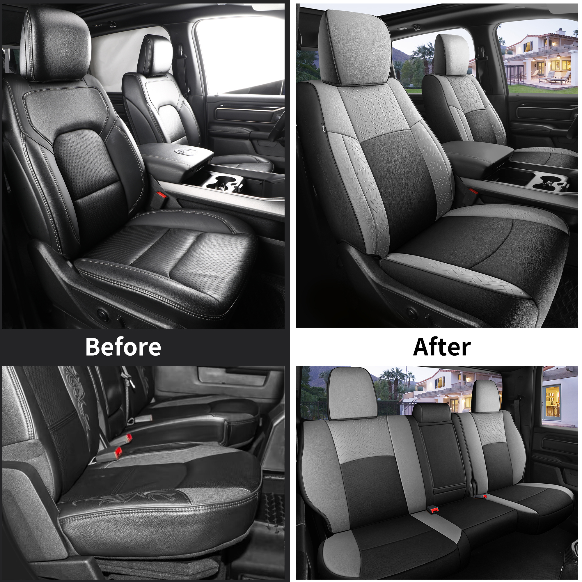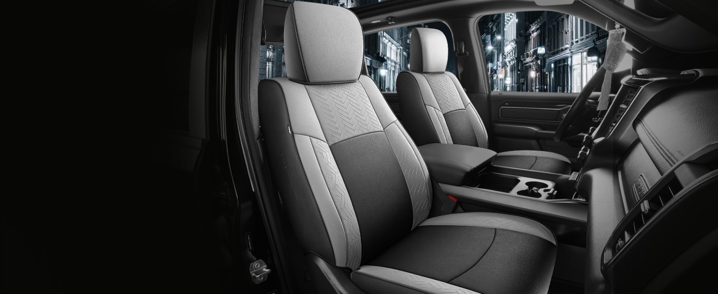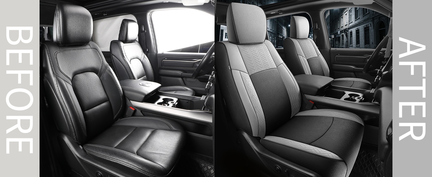 4, Specifically tailored to fit snugly all details of car seat covers for Dodge Ram, and ensure the full function, not affecting at all the use of airbag, armrests, safety belt, child safety seats and seat adjustments. full wrap front seats come with seat back organizer for improved user convenience.
