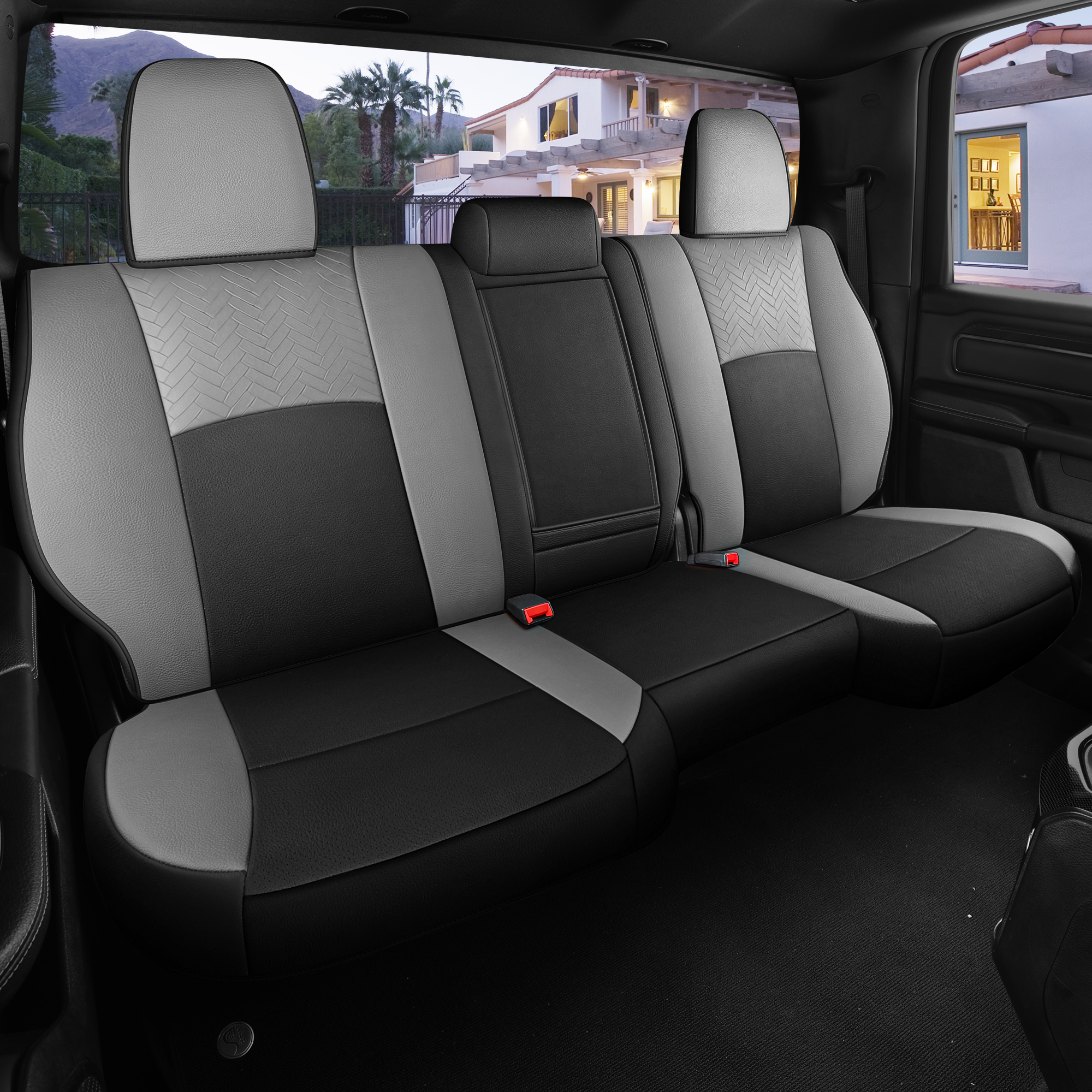 1, Pickup seat cover is tailored specifically for Dodge RAM 1500 2011 to 2018 and RAM 2500 3500 2011 to 2025, accommodating Mega Cab and Crew Cab configurations with Curved Bench. Please Note: the rear seat cover is 40/60 split designed, not fit for solid back bench seat.