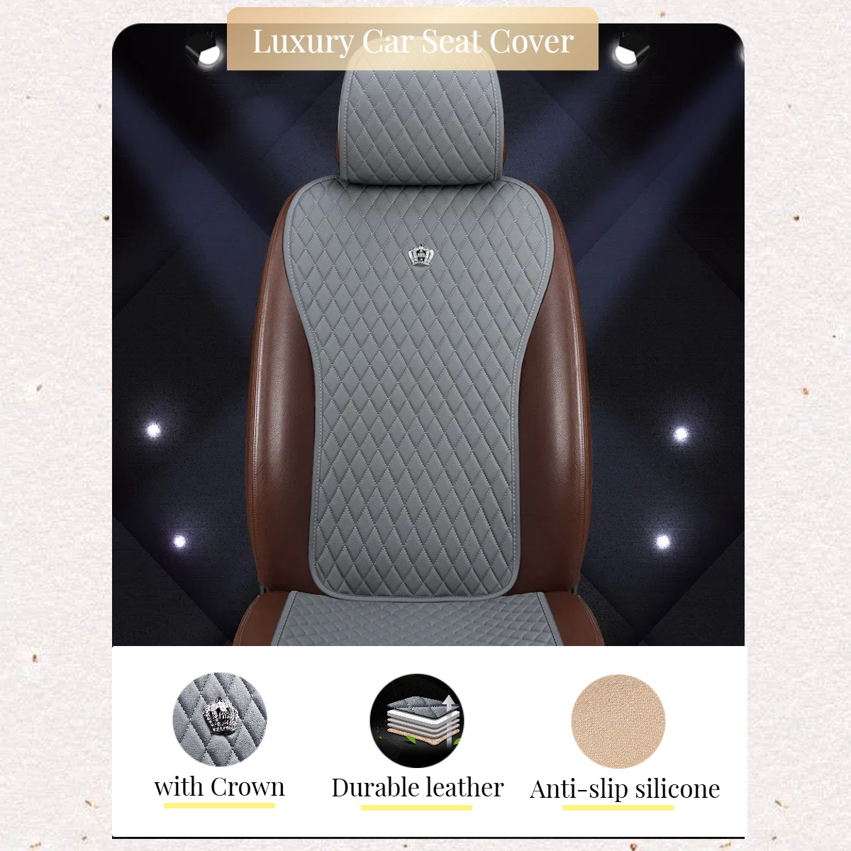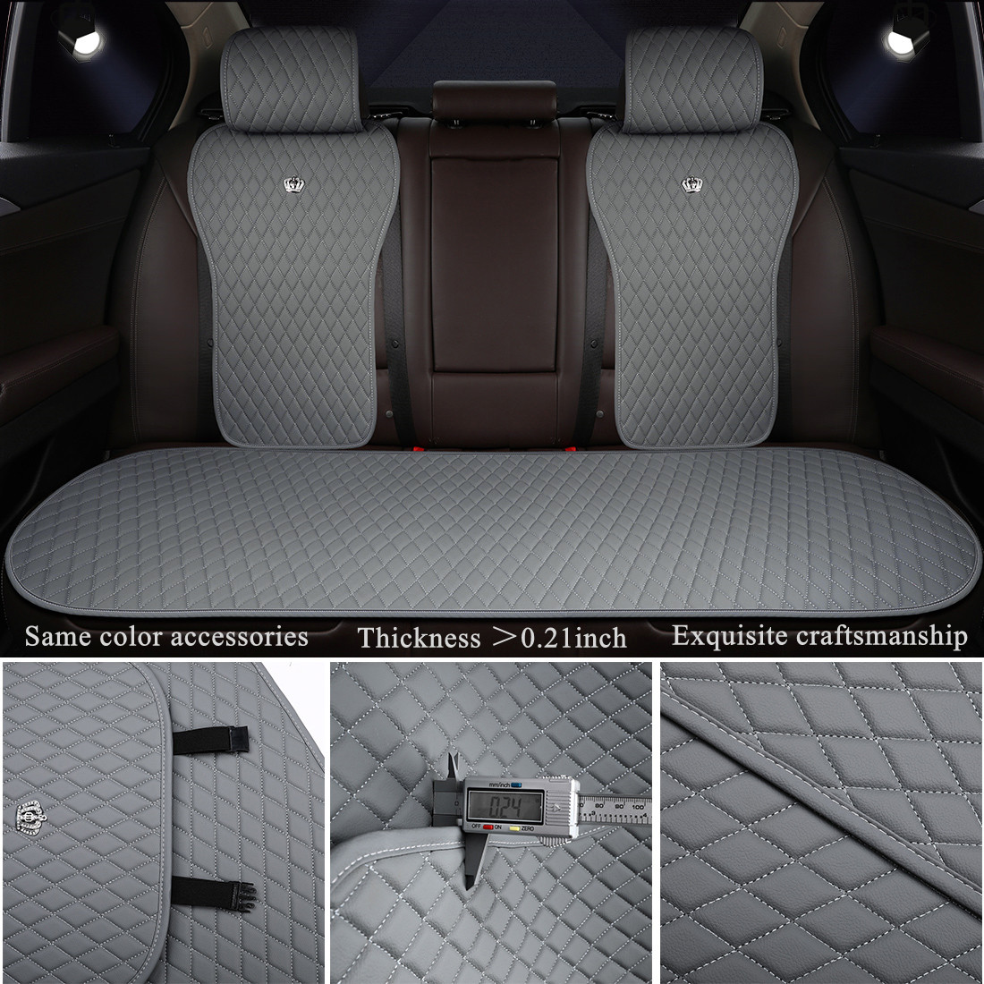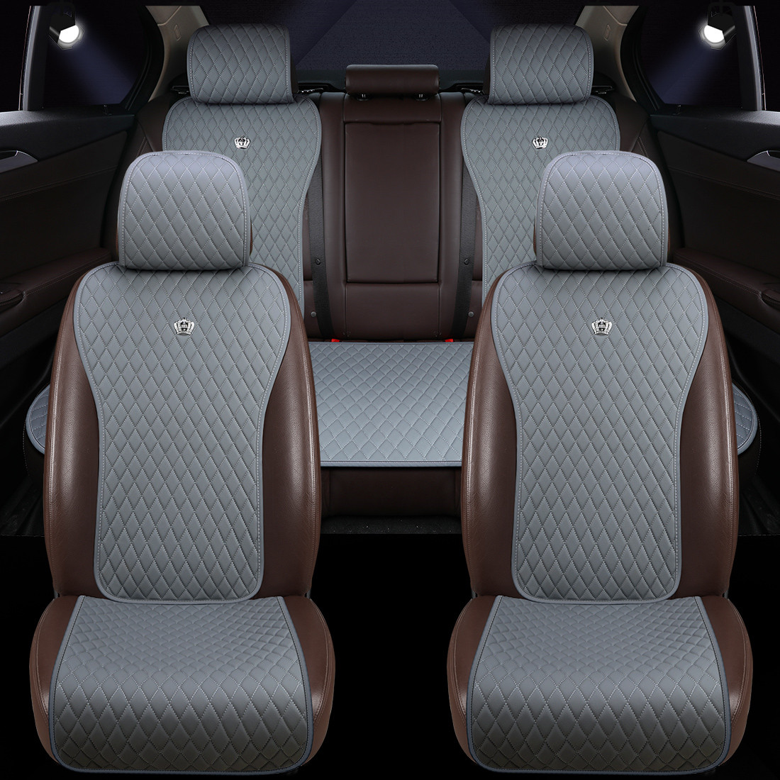 Gray Car Seat Cover with Crown Universal Leather Auto Seat Covers 2/3 Covered