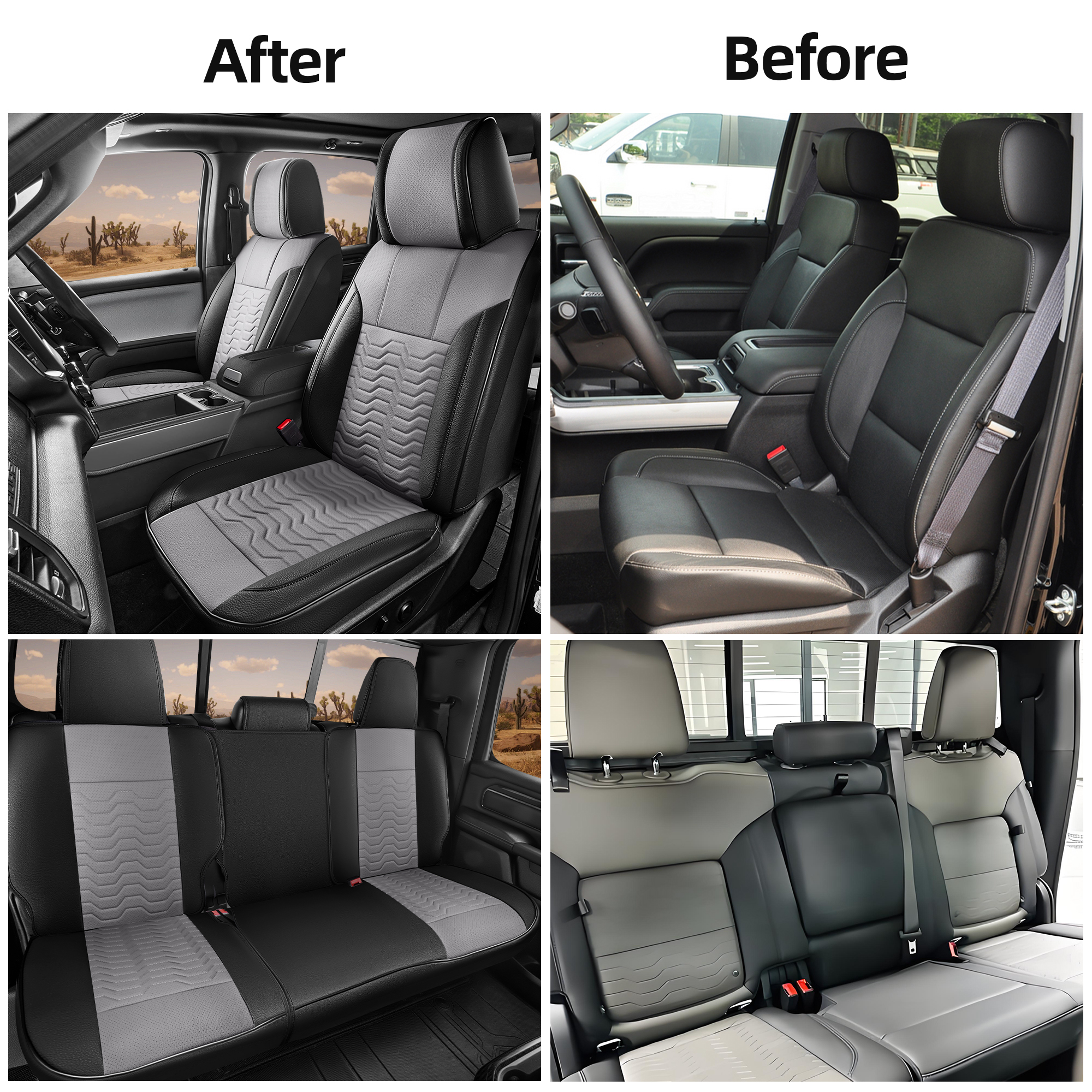 1, Car seat cover is tailored specifically for 2014-2018 Chevy Silverado 1500 2500 3500HD Crew Cab Double Cab LT LZ LTZ 4×4 Z71 DURAMAX High Country, also applies to 2014-2018 GMC Sierra models.