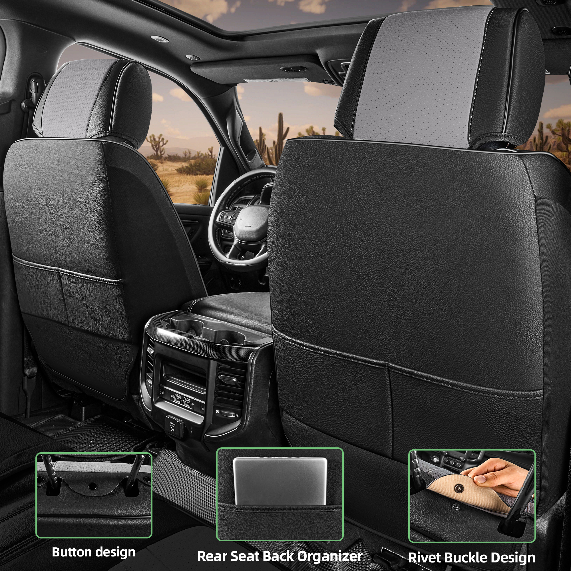 4, Specifically tailored to fit snugly all details of car seat covers for chevrolet silverado and ensure the full function, not affecting at all the use of airbag, armrests, safety belt, child safety seats and seat adjustments. full wrap car seat covers front seats come with seat back organizer for improved user convenience.