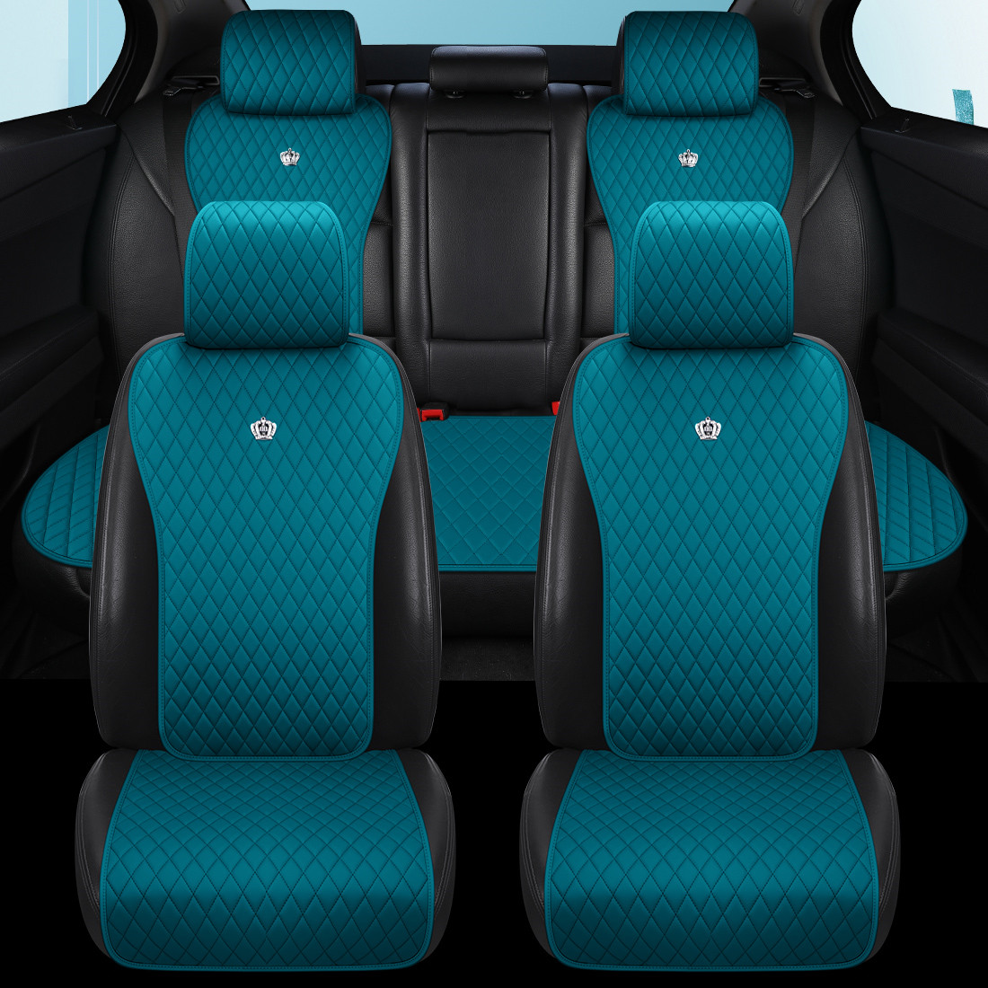 Peacock Blue Auto Seat Covers Leather Universal Seat Cover with Crown 2/3 Covered