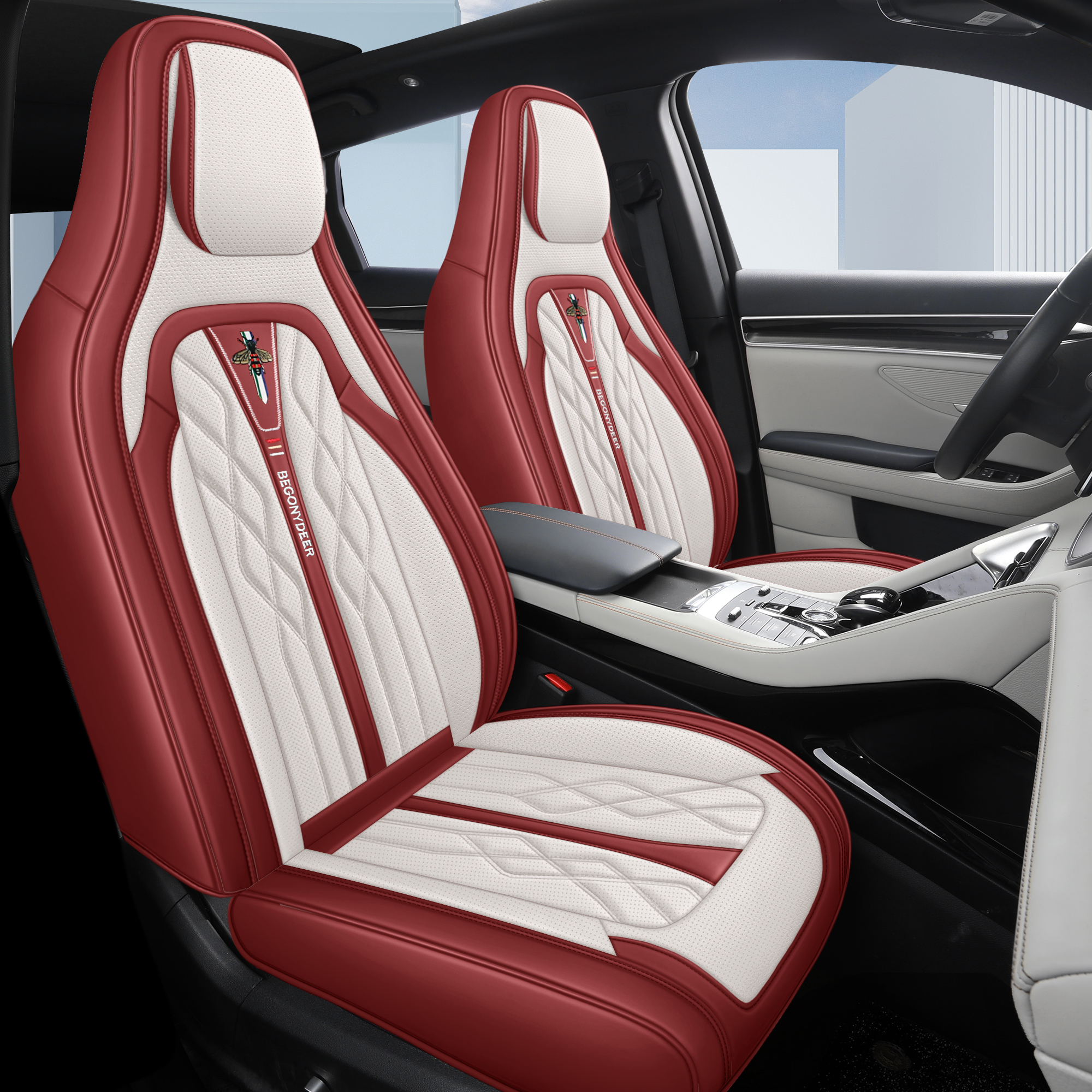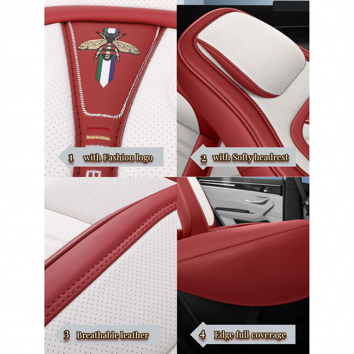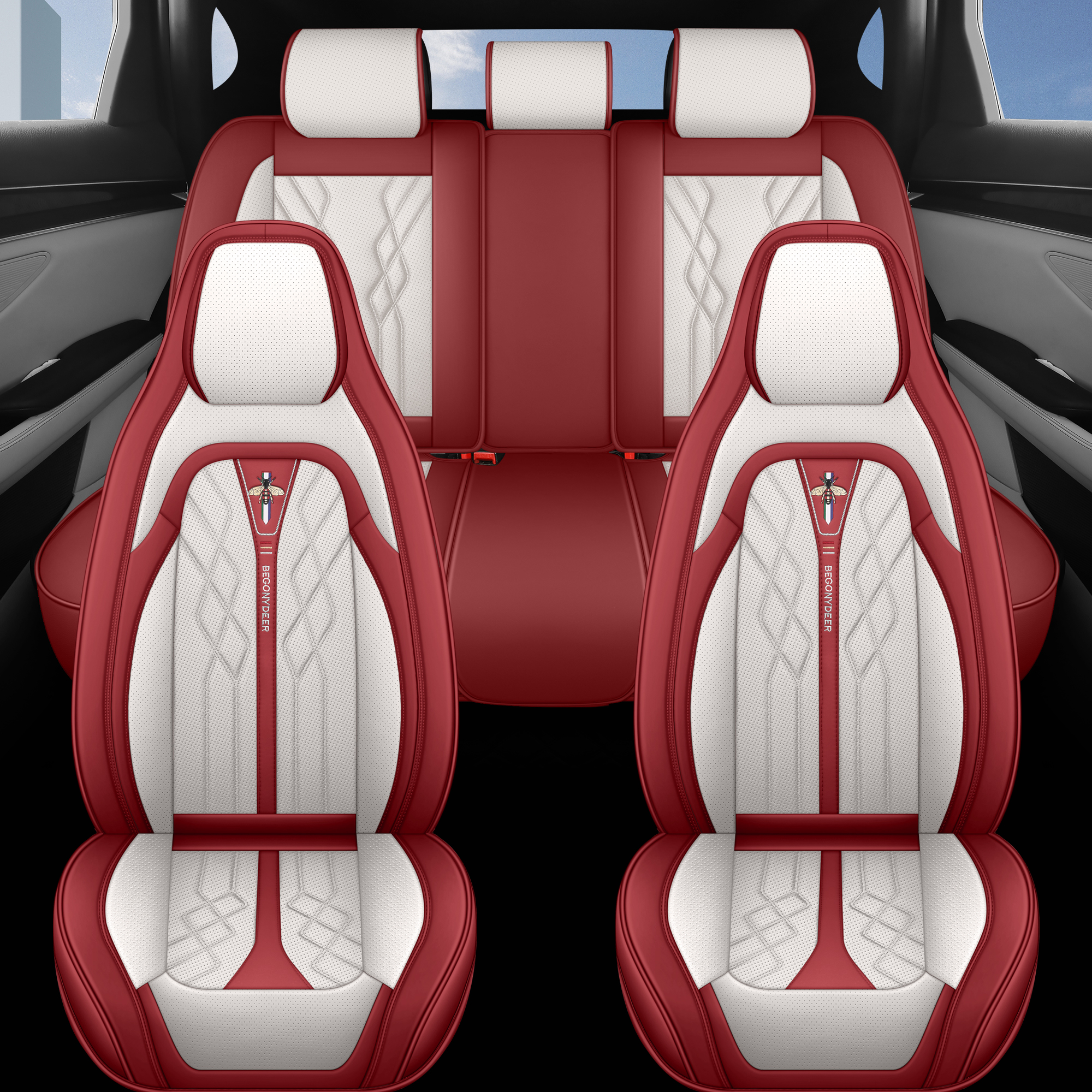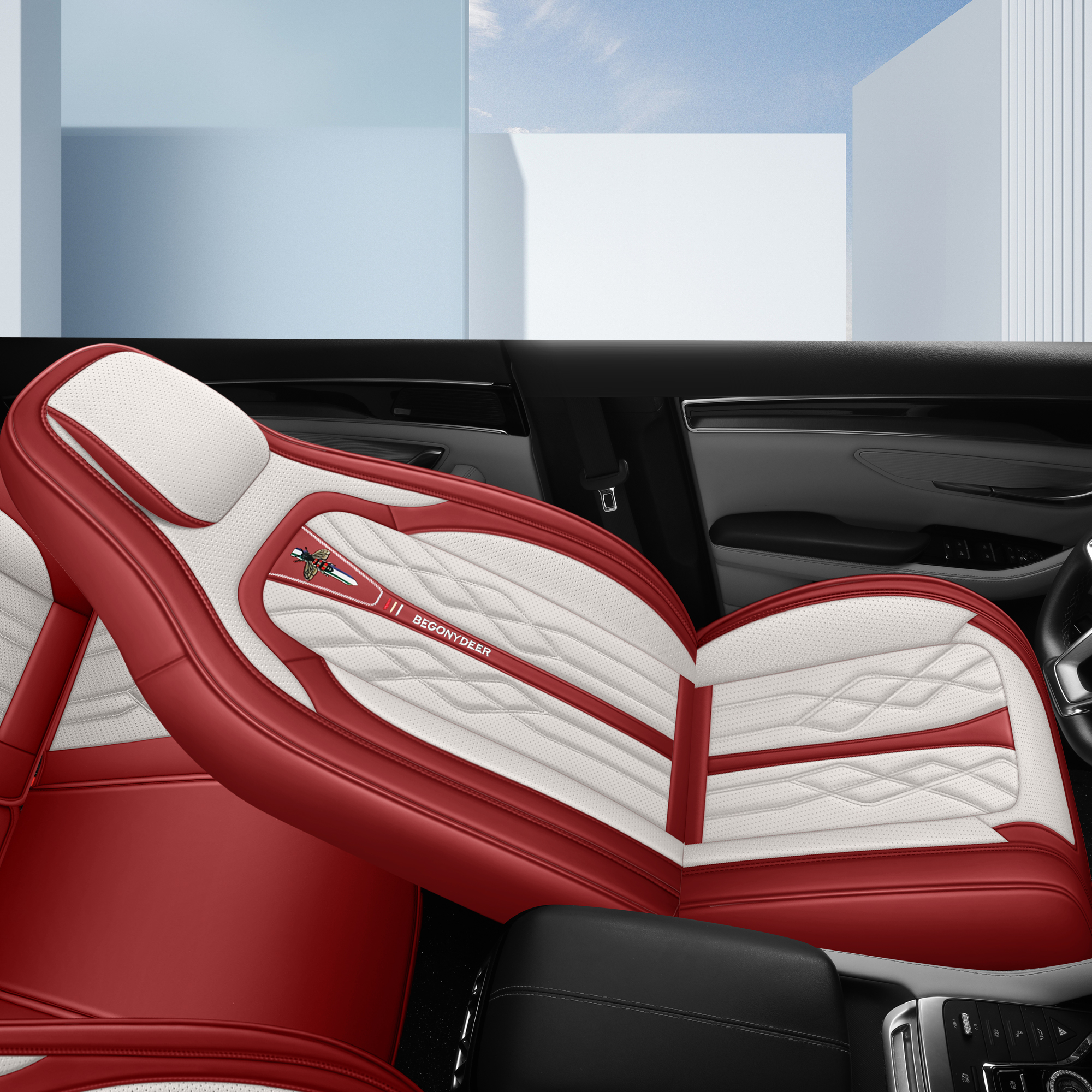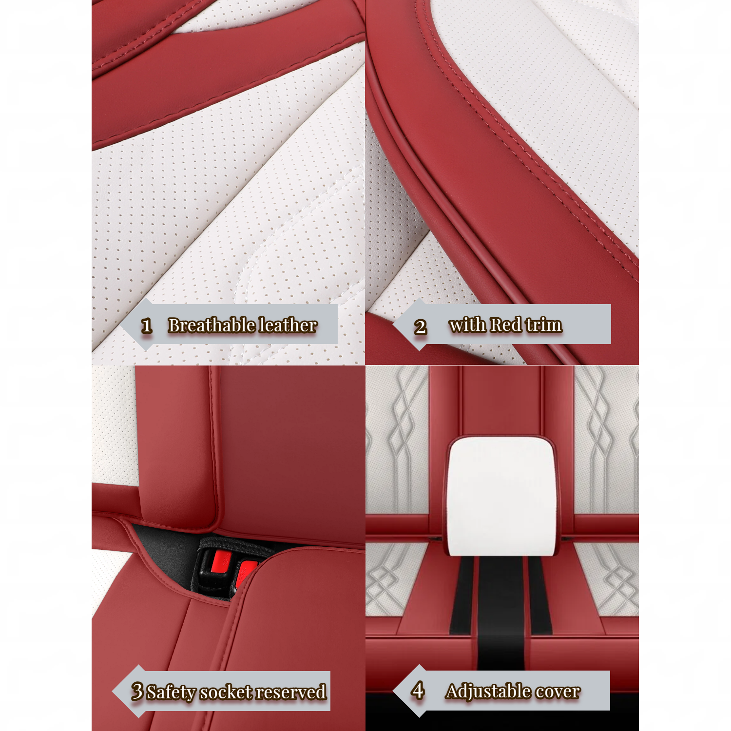 White and Red Car Seat Cover with Softy Head Pillows Leather Integrated Seat Cover