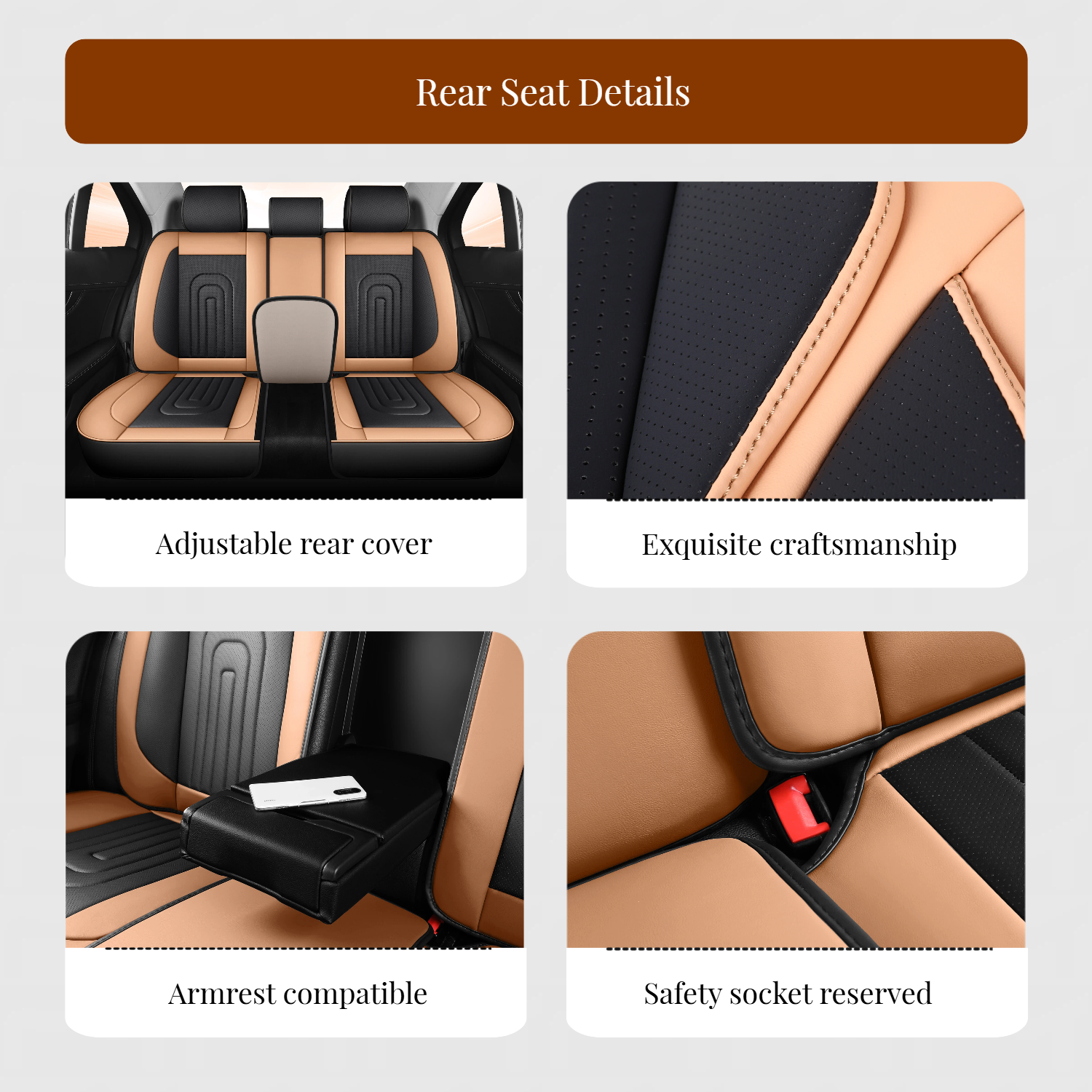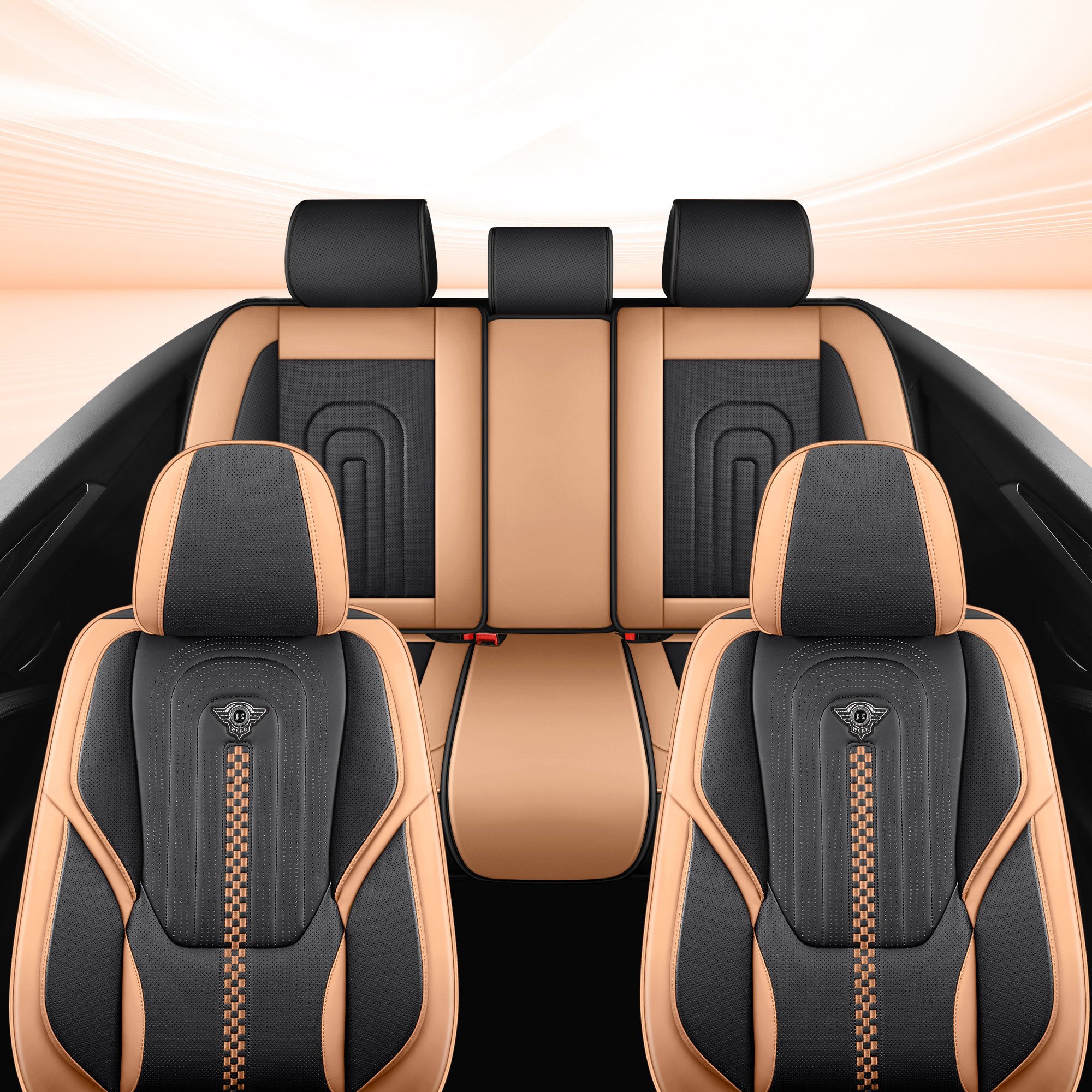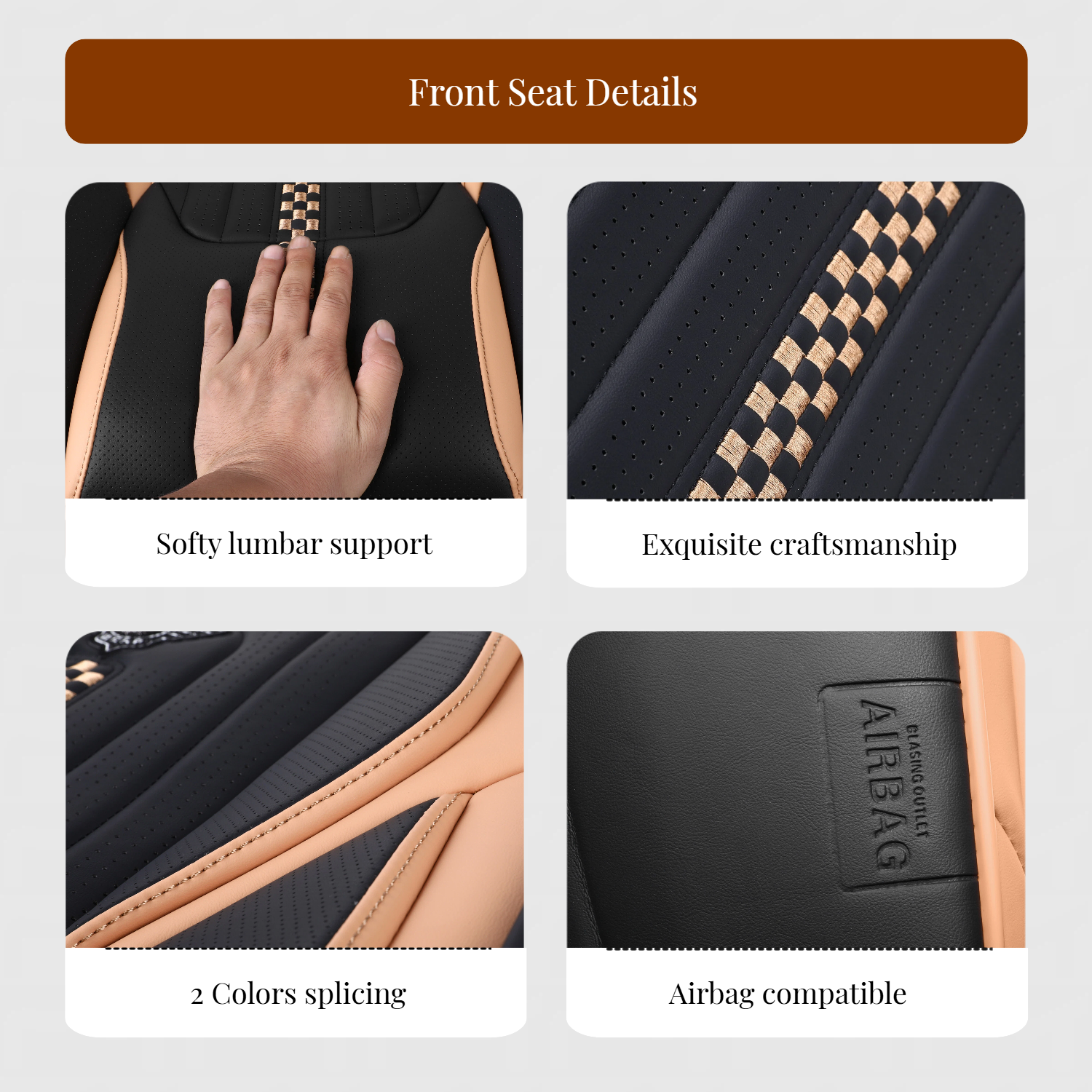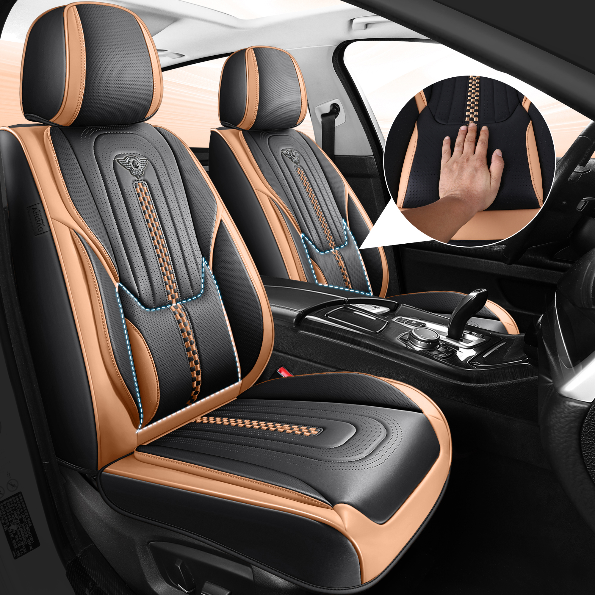 1, Made of high-grade leather, which no odor and comfortable touch. It is equipped with thick and high-quality high-density foam to create top elasticity and achieve maximum comfort during driving.