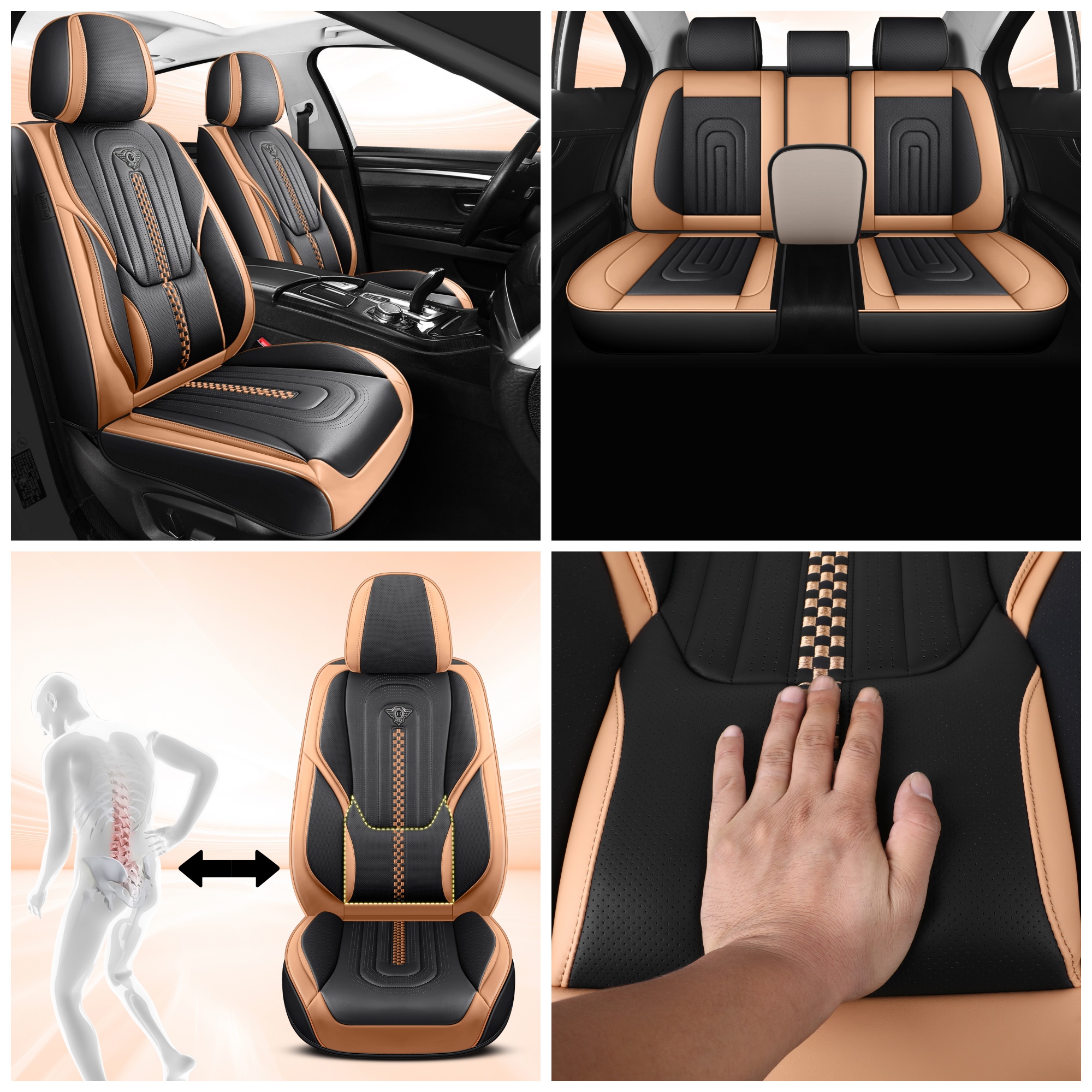 2, Soft and breathable leather with lumbar support provide a comfortable and soft feeling while driving, making your commute or road trip more relax and enjoyable, no feeling of fatigue.