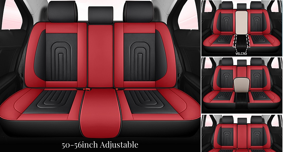 Leather Seat Cover for Cars with Lumbar Support Black and Red Universal Seat Protector Full Set