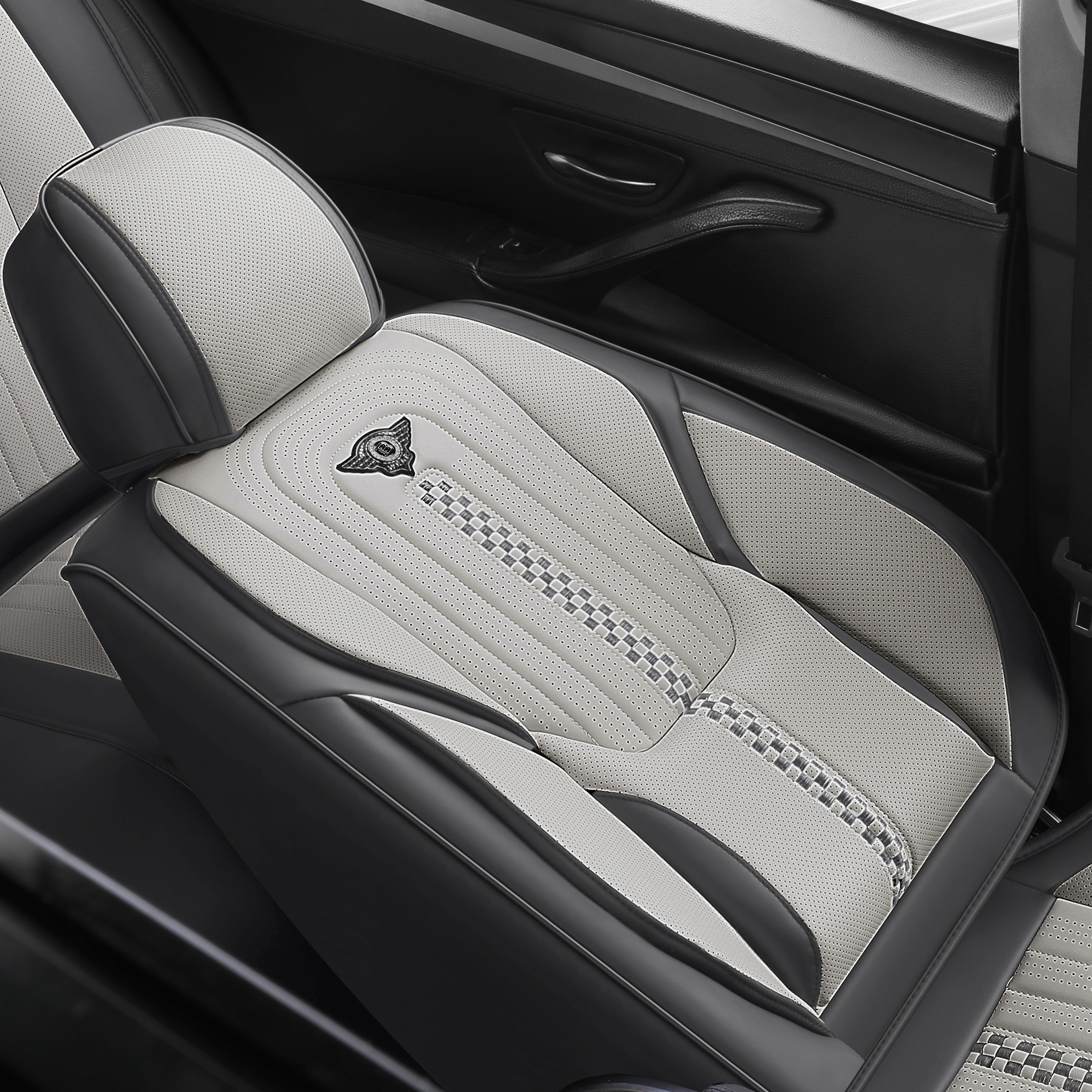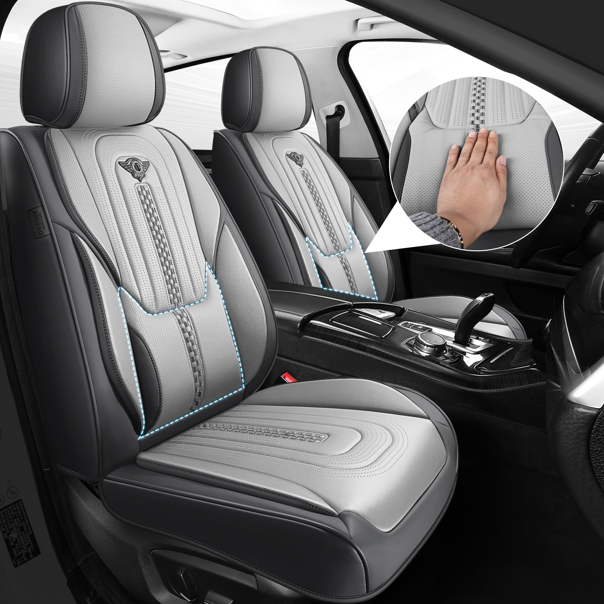 1, Made of high-grade leather, which no odor and comfortable touch. It is equipped with thick and high-quality high-density foam to create top elasticity and achieve maximum comfort during driving.