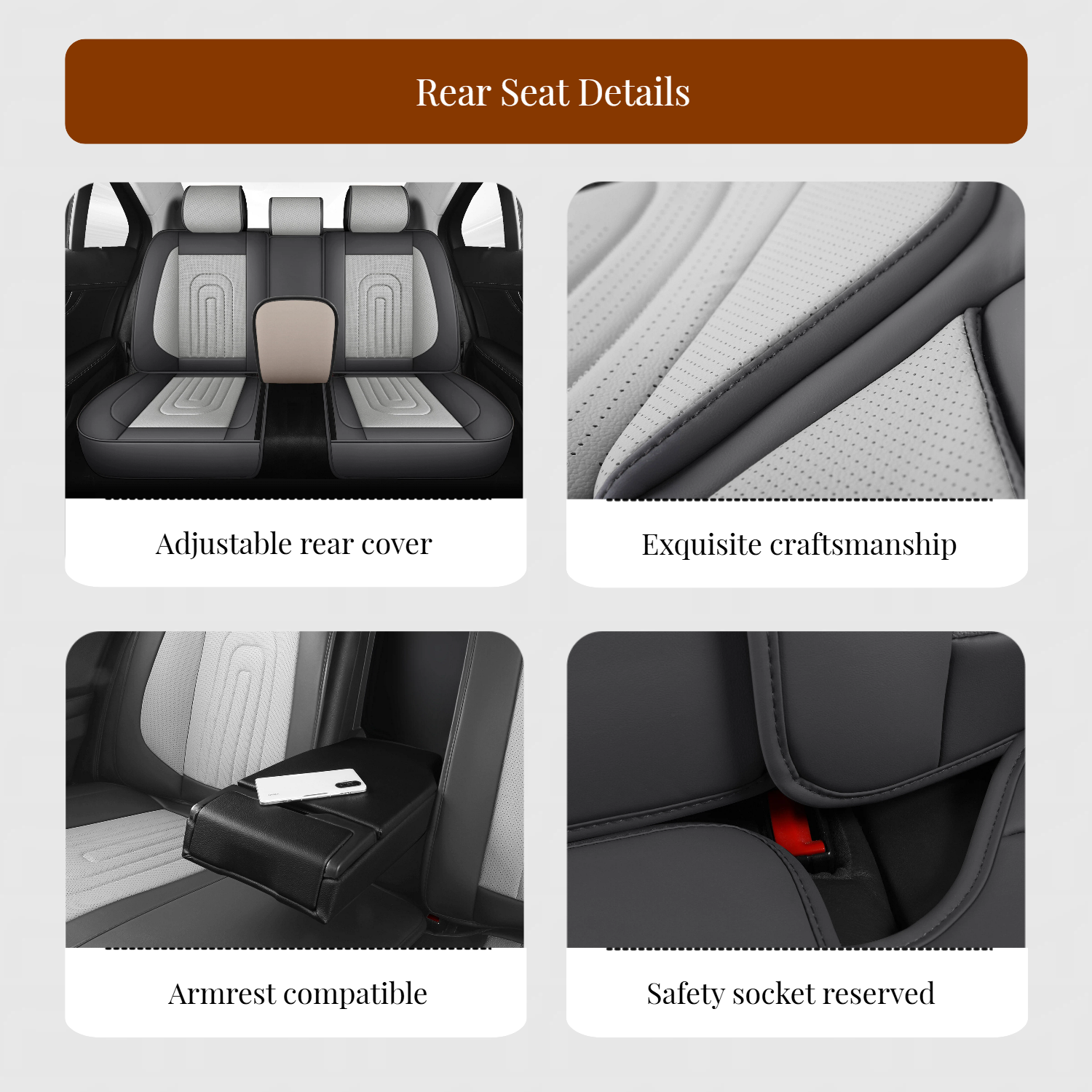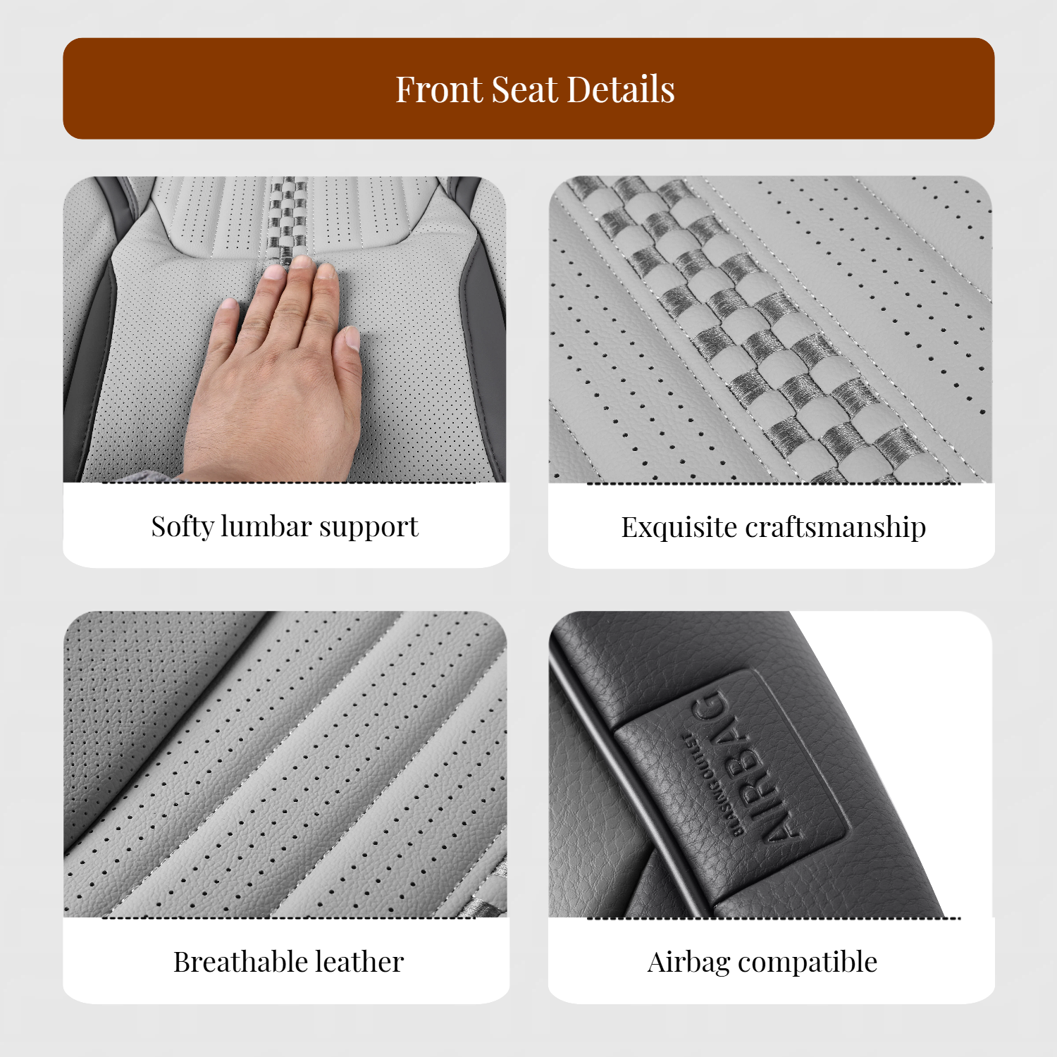 Leather Seat Cover for Cars with Lumbar Support Gray Universal Seat Protector Full Coverage