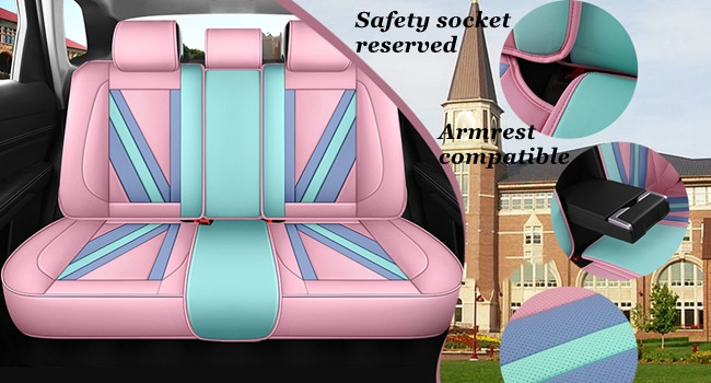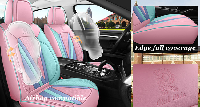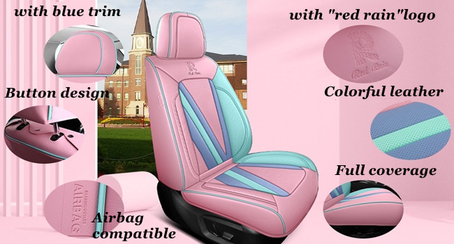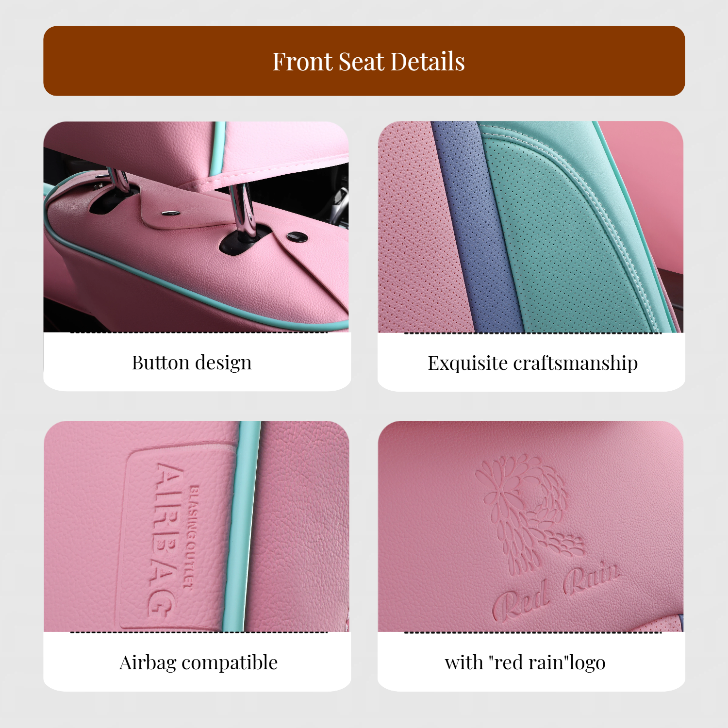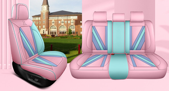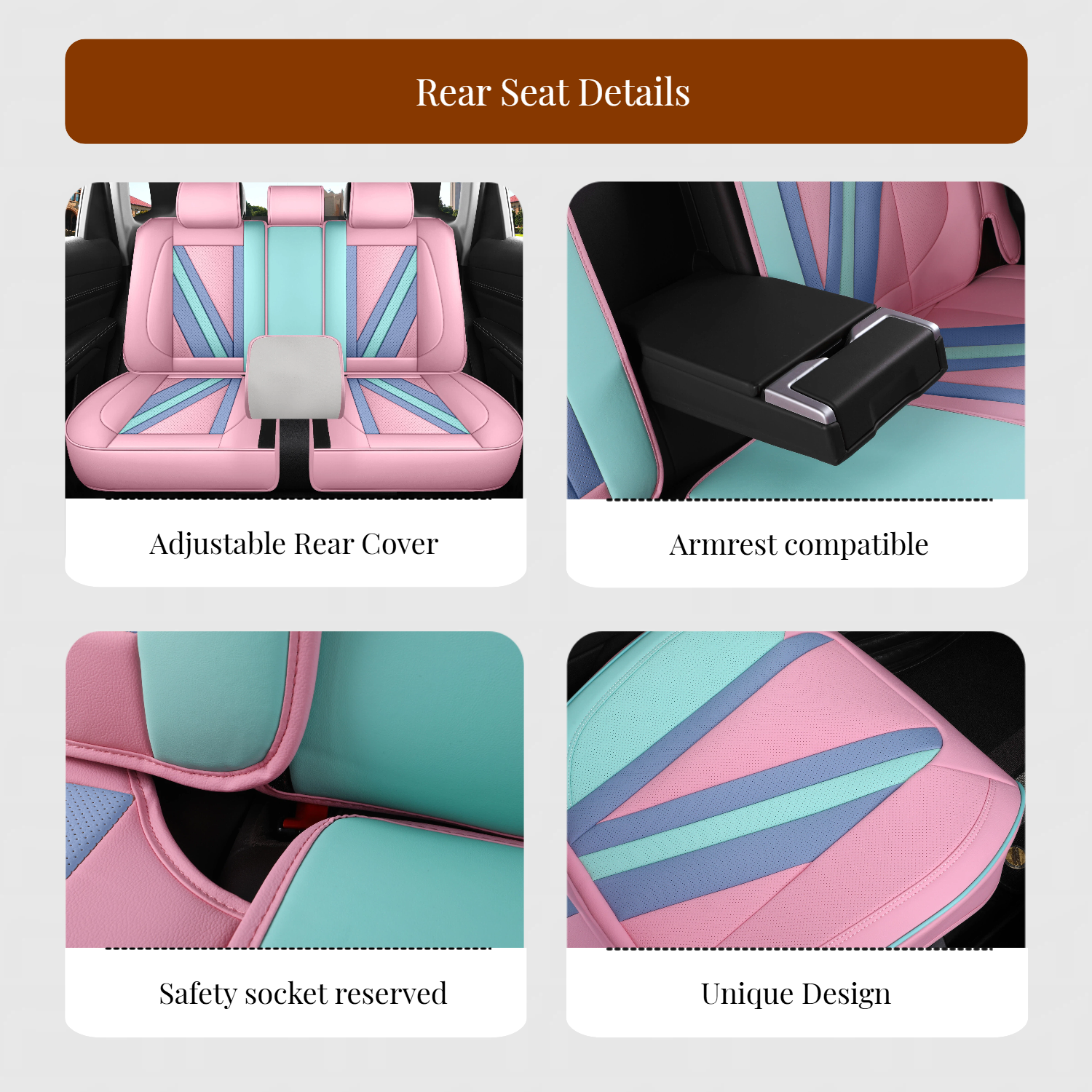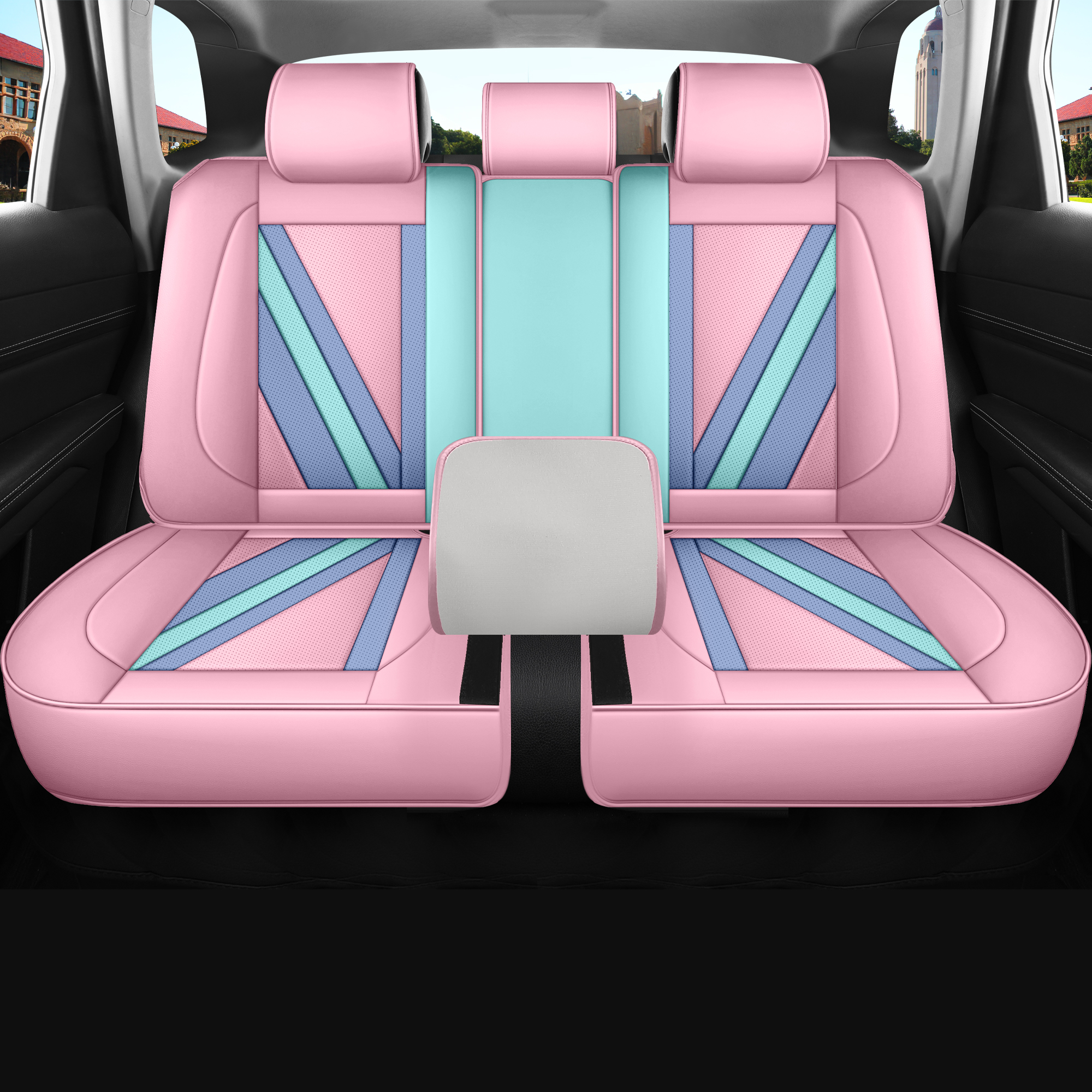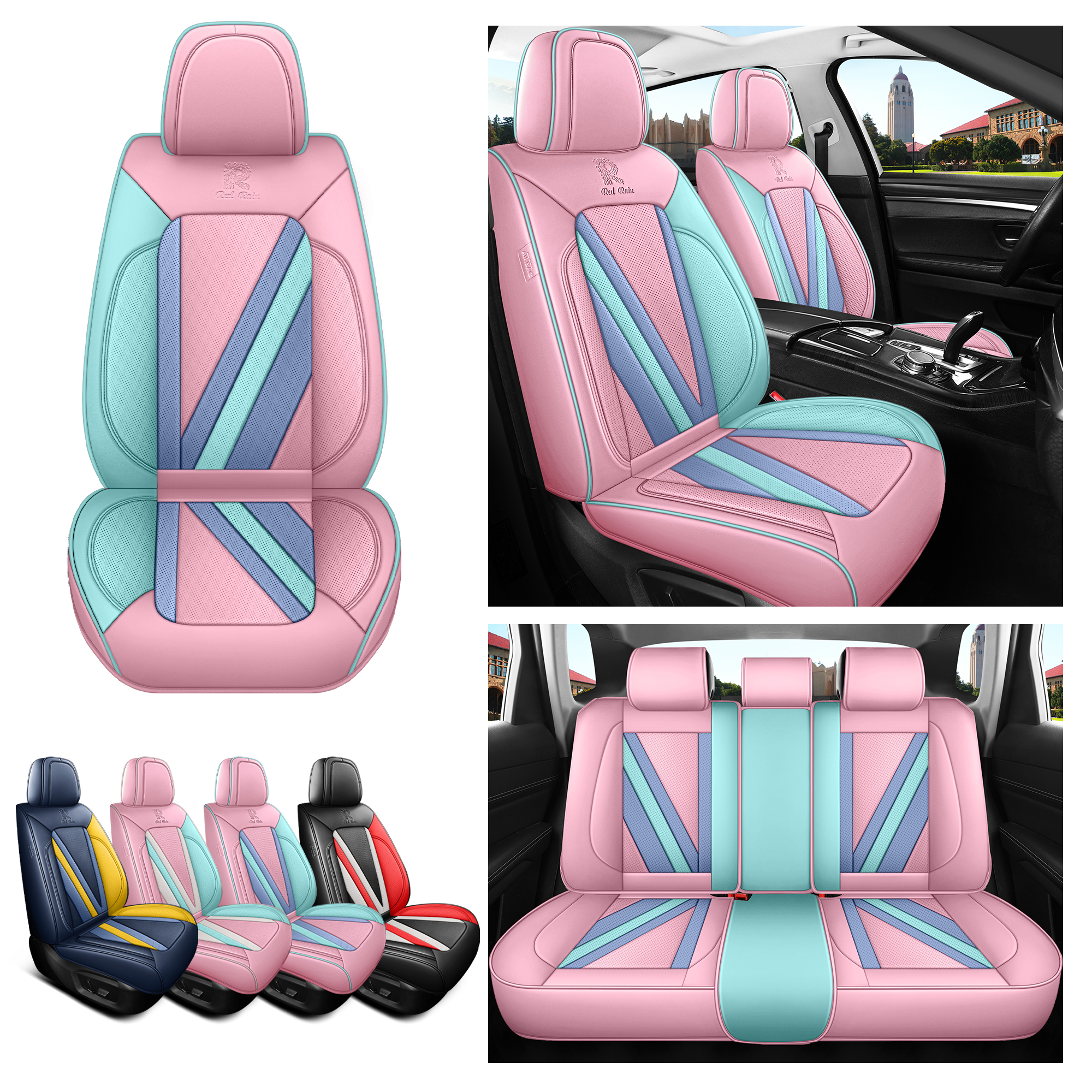Universal Leather Auto Seat Covers Pink and Blue Full Set Full Coverage 5 Seater