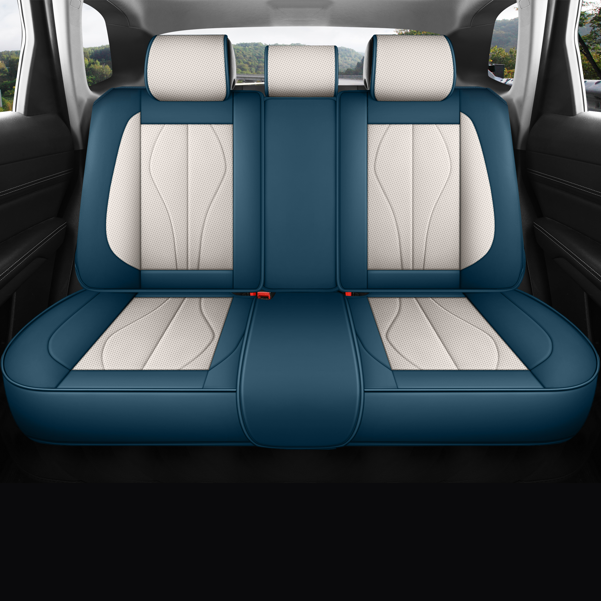 4, The middle pieces of the rear row can be adjustable to fit different seat widths, individual headrest cover easily adjusts for optimal comfort and safety.