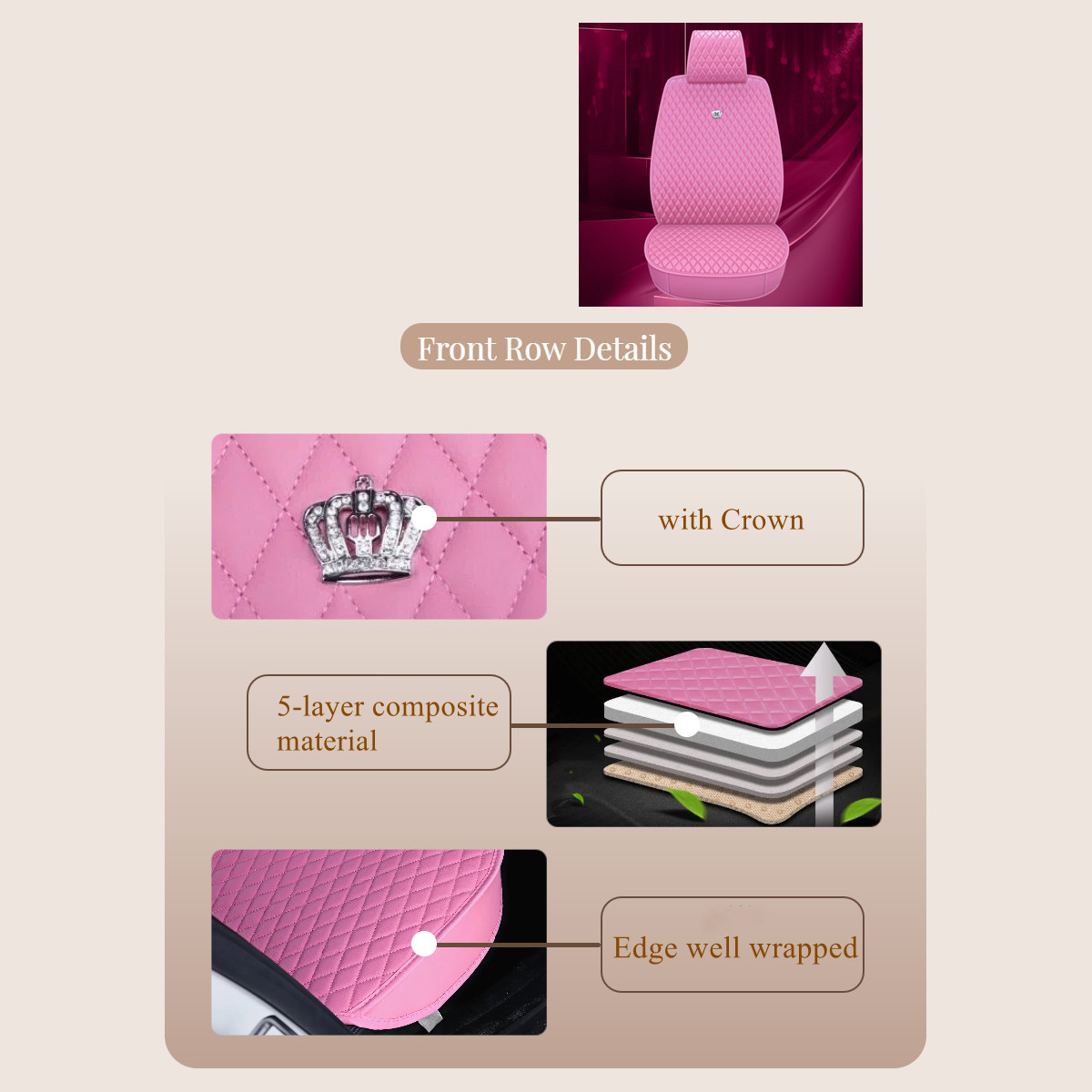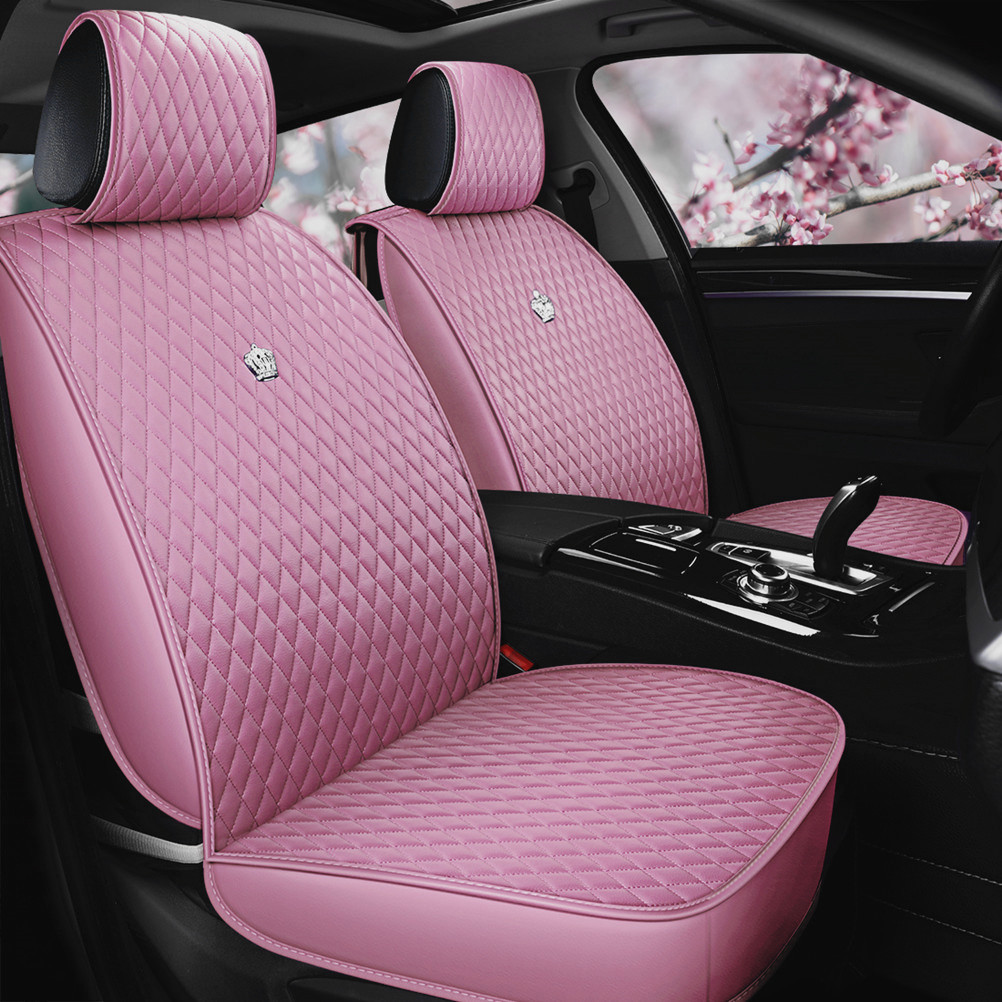Universal Car Seat Cover with Crown Fashion Full Coverage Leather Seat Cushion Full Set